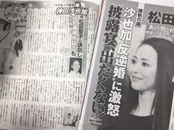 サイゾーウーマンコラム神林広恵「女性週刊誌ぶった斬り」聖子と沙也加の確執をめぐる暴論 コラム "噂の女"神林広恵の女性週刊誌ぶった斬り!【第363回】 松田聖子の恋愛観が“確執”の種? 神田沙也加の結婚報じる女性誌の暴論 2017/05/09 21:00 女性週刊誌ぶった斬り!寺島しのぶ松田聖子 下世話、醜聞、スキャンダル――。長く女性の“欲望”に応えてきた女性週刊誌を、伝説のスキャンダル雑誌「噂の真相」の元デスク神林広恵が、ぶった斬る! 左から「週刊女性」5月23日号(主婦と生活社)、「女性自身」5月23日号(光文社) ゴールデンウィーク中、家の固定電話に世論調査依頼の音声メッセージが。もちろん受けて立ちました。安倍政権を支持するか? 支持政党は? 豊洲移転問題の是非は? 都知事選で都民ファーストの会を支持するか? 少しでも安倍政権支持率低下の糧になれば幸いなのだが――。 第363回(5/9発売号より)※「女性セブン」は合併号につきお休み 1位「ペアルック直撃撮 神田沙也加 松田聖子と訣別し 父と事務所設立も」(「週刊女性」5月23日号) 参照「松田聖子 沙也加“反逆婚”に激怒『披露宴、出たくない!』」(「女性自身」5月23日号) 2位「寺島しのぶ 『息子に音羽屋名跡を!』“女を呪った”母の闘い」(「女性自身」5月23日号) 参照「寺島しのぶの音羽屋式英才教育」(「週刊女性」5月23日号) 3位「ファンキー加藤 “W不倫”騒動中に授かった第2子ベビーが誕生していた」(「週刊女性」5月23日号) ゴールデンウィーク明けの「女性自身」と「週刊女性」では、特集ネタが2つ被ったので、その比較をしていきたい。まずは神田沙也加の結婚に関するエピソード。ともに母親である松田聖子との確執を扱っているが、しかしそのトーンは微妙に食い違う。 まずは「週女」。沙也加と夫・村田充さんのマクドナルドデート目撃談と、その後の直撃をフックに、いまだ聖子が娘の結婚についてコメントを出していないこと、逆に父親・神田との親密ぶりが描かれるが、注目すべきは、父子の新事務所設立だ。 沙也加は結婚と同時期に聖子の事務所を離れ、新事務所を設立しているが、記事によると、そこに父親である神田も“移籍”するというのだ。 新情報、新展開である。しかもこの新事務所の社長は聖子の兄で、住所も前の聖子の事務所と同じ。これは一体! なんとも複雑な家族関係、そして今後の波乱を予感させるものだが、一方の「自身」には、神田の移籍に関する記載はなし。代わって、これまで散々報じられてきた沙也加と聖子の確執、聖子による沙也加の恋愛への干渉の歴史が描かれる。だが、そこにはかなり驚く記述が。それは聖子が今回、沙也加結婚に反対した理由だ。 「『この男、もしかして私の財産目当て?』とまで疑心暗記になっていて、披露宴にも“出たくない”ようです」(音楽関係者のコメント) 次のページ 首を傾げたくなる心理学者のコメント 123次のページ 関連記事 木村拓哉、“娘”タブーを解禁の焦り――静香との「母娘写真」に実名表記で報じる意図親ジャニーズと反ジャニーズがくっきり――木村拓哉『無限の住人』めぐる女性週刊誌ジャニーズの制約と重圧――香取慎吾の「隠し子」疑惑をめぐるいくつものエピソード井上真央の直撃取材コメントから読み取る、嵐・松本潤と現在の関係性ワイドショーとは一線を画す、「週刊女性」の森友学園問題に対する報道姿勢