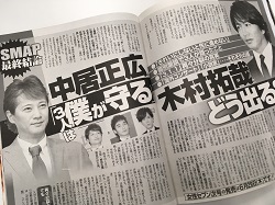 サイゾーウーマンコラム神林広恵「女性週刊誌ぶった斬り」ジャニーズ元マネへの批判を煽る女性誌 コラム "噂の女"神林広恵の女性週刊誌ぶった斬り!【第369回】 ジャニーズ残留決めた中居を持ち上げ、元女性マネジャーへの批判を煽る「女性セブン」 2017/06/20 21:00 女性週刊誌ぶった斬り!SMAP中居正広 「女性セブン」6月29日・7月6日合併号 下世話、醜聞、スキャンダル――。長く女性の“欲望”に応えてきた女性週刊誌を、伝説のスキャンダル雑誌「噂の真相」の元デスク神林広恵が、ぶった斬る! 国会閉会、安倍晋三首相の会見に続き森友学園への強制捜査が開始された。籠池泰典前理事長はこれを「国策捜査」と批判しているがその通りだろう。問題は安倍首相夫妻、財務省、大阪府にまたがるさまざまな疑惑や、どんな特別待遇や利権誘導があったかだ。トカゲの尻尾切りにならないよう、注視する必要がある。 第369回(6/15~20発売号より) 1位「SMAP最終結論 中居正広『3人は僕が守る』木村拓哉どう出る?」(「女性セブン」6月29日・7月6日合併号) 2位「南果歩 離婚の思い募らせた“別居”夫の『あきれた不倫弁明』(「女性自身」7月4日号) 同「南果歩 帰らぬ夫渡辺謙の荷物をたたき出した夜」(「女性セブン」6月29日・7月6日合併号) 3位 「小出恵介 お相手はなんと『17才シングルマザー』『示談金1000万円』ああ泥仕合」(「女性セブン」6月29日・7月6日合併号) 6月19日、スポーツ紙各紙が報じた元SMAP3人の独立。その前日には事務所が契約終了を発表し、午前4時解禁という“報道協定”を経ての一斉報道だったが、やはり、独立組に中居正広の名前はなかった。ここ1カ月ほどマスコミが指摘してきた中居残留は現実となったのだ。 それに先立つ形で、“事務所発表前”の女性週刊誌各紙も、中居残留を伝えているが、その “先陣”を切ったのが先週木曜日発売の「女性セブン」だった。 3人が個別に事務所と話し合いを持ったこと、そして中居は一人残留を決めたことをかなり断定的に報じているが、中でも興味深いのが中居残留の背景だ。 「独立を決めた3人の防波堤になる」 現在マスコミで盛んに伝えられる“防波堤”説を「セブン」がいち早く報じた形だが、しかし「セブン」が指摘した“防波堤”説の、そのまた理由がすごかった。それが元女性マネジャーへの批判だったから。 記事によれば、香取慎吾と草なぎ剛は元マネが設立した事務所に移籍するようで、2人はこれまでも元マネやその事務所関係者と何度も打ち合わせをしてきたという。そのため「今後、そのやり方に非難の声があがる可能性もあります。だからこそいろいろな制約から3人を守るために中居さんはあえて残留を決めたんです」だって。 結局、元マネ憎しか。もちろんこれも事務所の“意向”だろう。あからさまな独立組批判は今や憚られる。なにしろ、一連の騒動でのジャニーズによる情報操作がバレバレになってしまったから。でも元マネだったら悪役にしても大丈夫。そして一方では、残留を決意した中居を目一杯持ち上げる。 しかも元マネに“非難の声があがる可能性”って、まだ起こってもいないことをわざわざ指摘するのは、一種の警告であり、“非難しよう!”という煽りでもある。なんだか文科省の前川喜平前事務次官の“出会い系バー”通いを報じた読売新聞みたいだ。読売も、自分たちが初めて報じたこのバー通いについて「不適切な行動に対し、批判が上がりそうだ」と煽っていたが、そっくりのレトリック。 それにしても、本当に中居残留は美談なのか、それとも裏切りなのか。残留にはなんらかの圧力があったのか、なかったのか。さらに独立組が今後芸能界から葬り去られる可能性はないのか。まだまだ元SMAPメンバーたちの動向を注視していく必要があるだろう。 次のページ 不倫発覚した渡辺謙と南果歩の“現在” 12次のページ 関連記事 淫行騒動の小出恵介が浮き彫りにした、女性関係で身を滅ぼす男の特徴中居は“裏切り者”になっても残留!? 変化する元SMAPメンバーとジャニーズの関係中居残留、香取&草なぎは独立――ジャニーズ御用雑誌が「分断」報じるワケ木村拓哉、“娘”タブーを解禁の焦り――静香との「母娘写真」に実名表記で報じる意図親ジャニーズと反ジャニーズがくっきり――木村拓哉『無限の住人』めぐる女性週刊誌