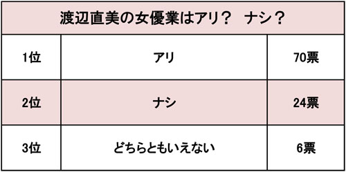 サイゾーウーマン芸能お笑い芸人渡辺直美“女優業”の是非を100人に調査 芸能 サイゾーウーマン世論調査 渡辺直美の“女優業”はアリか? ナシか? 『カンナさーん!』視聴者100名に調査!! 2017/09/19 16:25 芸能ウラ情報お笑い芸人 パワフルで超ポジティブなシングルマザー・カンナが主人公の連続ドラマ『カンナさーん!』(TBS系)が、ついに最終回を迎える。カンナ役を務める芸人の渡辺直美は、インスタグラムのフォロワー数日本第1位で、昨今は“ファッションアイコン”としても注目を集めている。そんな芸人の枠を越えた活躍を見せる彼女だが、女優としての一面は視聴者にどう映ったのだろうか? 『カンナさーん!』を視聴した男女100人に、「渡辺直美の女優業はアリか? ナシか?」とのアンケートを実施した。 『カンナさーん!』(TBS系)公式サイトより 「アリ」との回答は70票に上り、多くの視聴者が、“女優・渡辺”に好印象を受けた様子がうかがえた。 「さすが芸達者! 演技力も十分あるので、女優業もアリだと思う」(40代/男性) 「初めはお笑いだと思っていたが、シリアスな演技ができることに感動した」(50代/男性) 「大アリ。個性があって演技力も魅力的。こういうキャラは唯一無二」(30代/男性) 「まだ子どもがいないのに、楽しんで子育てしている姿が自然でよかった」(20代/女性) と、絶賛の嵐。「最初は全然期待していなかったけど、思っていたよりも役にハマっていて、いい意味で期待を裏切られた」(20代/女性)と感じた人は少なくなかったようだ。 また、「細くガリガリの女性俳優を見て気分が悪くなるよりも、ふっくらな直美さんのママ役は、明るく、温かさを感じ、とても似合っている。これからに期待」(40代/女性)「思ったよりも演技がうまいし、美人の女優よりも自分に近い気がして好感が持てる」(40代/女性)など、スリムな美人女優がドラマ主演を務めるケースが多い中、渡辺の持ち味を生かした役どころに親近感を覚えた同性も多かった。 とはいえ、「カンナ役はアリだと思うし、演技もうまいので、そこら辺の若手女優よりも良いと思う。ただ、当たり役というか、出来る役は限られる気がする」(30代/女性)「コメディな感じであれば、見ていて楽しいのでアリだとは思う。ドラマの内容によるところが大きい」(30代/男性)など、「キャラ以前に体格が稀有の存在なので、渡辺直美にしかできない役」(30代/女性)と認識している人が多数。今後については、「演技はそこそこ上手と思う。ただ、体形が体形なので、演技できる役が制限されるかと思う」(40代/男性)という疑念が拭いきれないようだ。 次のページ 渡辺直美の演技は学芸会レベル? 123次のページ 関連記事 斉藤由貴、不倫騒動で『カンナさーん!』打ち上げが中止!? 「撮影現場もピリピリムード」『カンナさーん!』で痛恨の演出ミス!? 渡辺直美の“顔”に「ある違和感」渡辺直美、「天狗になりかけてる」と業界注視! 「イエスマンだらけ」「現場でピリピリ」の証言渡辺直美、世界ツアー完売&高額ギャラの人気ぶりも……マスコミ界隈での評判が低いワケ『カンナさーん!』カンナの息子、視聴者人気暴落……「クズすぎる子ども」「胸クソ悪い」