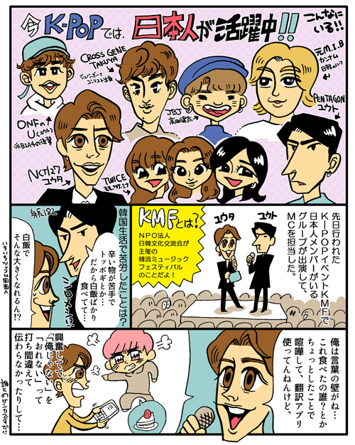 サイゾーウーマン芸能えるたまのアイドル自由帳 第57回 芸能 えるたまのアイドル自由帳 第57回 K-POPは空前の「日本人アイドル」バブル! NCT、PENTAGONら逆輸入イケメンを青田買い 2017/11/03 17:00 K-POPえるたまのアイドル自由帳 ――マンガ家・えるたまが、パロディとリスペクトでアイドルたちをいじくり愛でる! K-POPを中心に、男女問わずアイドルと呼ばれるすべての“煌めき”たちに捧ぎます……。※これまでwebサイト「おたぽる」で連載していたバックナンバーはこちら! 次のページ K-POPの中に突然のハロプロ! 12次のページ 関連記事 ジャニーズ、EXILE、EBiDANに次ぐ第4勢力! BOYS AND MEN研究生の残酷かつ美しい成長物語嗚呼12人の美しき少年たちよ…EXOの神々しさに思わず合掌!――SMタウンがやってきた!!T-ara、日本公演が「空席祭り」危機! 楽しんごにゲスト依頼も「ファン激怒」で中止のお粗末展開G-DRAGONと親密写真流出の小松菜奈、「菅田将暉と交際してたはず」とマスコミ騒然「ジャニーズより男前!」“株主の息子”“コネ”の批判も……中国新人アイドルに絶賛の声