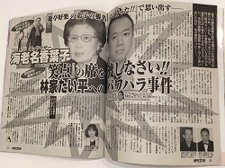 サイゾーウーマンコラム神林広恵「女性週刊誌ぶった斬り」泰葉と「週刊女性」の“太いパイプ” コラム “噂の女”神林広恵の女性週刊誌ぶった斬り!【第404回】 落語界パワハラ問題で「泰葉」から重要証言を引き出す「週刊女性」の“太いパイプ” 2018/03/13 21:00 パワハラ泰葉女性週刊誌ぶった斬り! 「週刊女性」3月27日号(主婦と生活社) 下世話、醜聞、スキャンダル――。長く女性の“欲望”に応えてきた女性週刊誌を、伝説のスキャンダル雑誌「噂の真相」の元デスク神林広恵が、ぶった斬る! 財務省の文書改ざんに大きな展開が。しかし、問題は、なぜ役人が自分たちのためになどならない、いやクビを絞めかねない改ざんを行ったのか、虚偽答弁を繰り返したのか、だ。直接的圧力がなかったとしても、こんなことを役人にさせたのが、現政権と安倍晋三首相の“恐怖支配”の実態を物語っている。 第404回(3/8〜3/13発売号より) 1位「ゴッドマザー海老名香葉子 『「笑点」の席を渡しなさい!!』林家たい平へのパワハラ事件」(「週刊女性」3月27日号) 2位 「吉永小百合 『これで引退…決意を変えた樹木希林さんの言葉』」(「女性自身」3月27日号) 3位「乙武洋匡さん ザキトワ似女子大生と『幸せです!』」(「女性セブン」3月22日号) 女子レスリング・伊調馨選手へのパワハラ事件が大きな話題となったが、「週刊女性」が報じた落語界のパワハラ記事がすごいことになっている。 その内容は、三遊亭好の助が「林家九蔵」を襲名する予定が、直前に林家正蔵からの異議で急遽取りやめになったが、実は反対したのは正蔵の母親である海老名香葉子だったというもの。関係のない海老名家からの横槍に、落語界からも反発が出ているようだ。しかし、すごいのがここからである。 記事では香葉子のこれまでのパワハラぶりに言及していく。その被害者とされるのは、林家一門の林家たい平だ。2006年、たい平が『笑点』(日本テレビ系)のレギュラーになった際、香葉子が自分の息子のいっ平(現・三平)にその席を譲れと言ったり、テレビ局にもたい平を降板させるよう横やりを入れて――。 しかし、このパワハラについて「知っていますよ」と事実認定のお墨付きをした証言者がいる。それがなんと娘の泰葉なのだ。 泰葉は「週女」の取材に答え、母親のパワハラをこう告発している。 「たい平くんは大変でしたよ。私、そのときの話をすると泣いちゃうからやめてください」 「こんな妨害は日常茶飯事で、(香葉子夫人の)被害にあった人はたくさんいますよ」 さすがは海老名家のお騒がせ娘・泰葉だが、その告発はさらにヒートアップ。母親の性格についてもこんなことを言い始めた。 「彼女は性格的にすごく売れたりする人を非常に嫉妬するんですよ。要するに、たい平くんは才能があるし、自分の息子たちより人気があったのが嫌だったんですよ」 いやはや……。暴走娘の面目躍如だが、それにしても、このネタで泰葉にコメントを求める「週女」もすごい。「週女」といえば、昨年、泰葉が「週刊ポスト」(小学館)誌上でヌードを披露した際、直撃取材に行き、そこで泰葉に自宅に招かれ、インタビューに成功。さらに取材後はお手製のひやむぎ冷麺を振る舞われたことがあった。 このときから泰葉と“太いパイプ”を持ち続けていたんだな。でもって、今回は母親に対するパワハラお墨付きのコメント。やるのう(笑)! これまでも平和や反原爆への思いを訴え続けてきた吉永小百合だが、主演映画『北の桜守』が公開中ということもあり、「女性自身」のインタビューに登場、またしても素敵なお言葉を連発してくれている。 「戦争って、どこが勝った、負けたじゃなくて、要は人を殺すことなんだという事実を、絶対に忘れちゃいけない。 映画を通じて現代の人にも、わかりやすくこうしたメッセージを伝えることは大事なことなんだと思います」 そして 1966年、原爆をテーマにした映画 『愛と死の記録』で、被爆者のケロイドの描写が刺激的すぎると、カットを命じられた際、吉永ら出演者が撮影所前で座り込みの抗議をしたことに触れ、「7年前の、原発事故後の福島に対する社会の反応に似た構図を感じましたね。最近は核兵器禁止条約等にも関心が高まっていますが、もっと語り合っていかなければいけないと思っています」とも語っている。 45年、東京大空襲の3日後に生まれたという72歳の吉永だが、ここ数年、こうしたメッセージをかなり頻繁に発している。それは集団的自衛権容認、秘密保護法や安保法制などを立て続けに成立させ、さらに憲法改正を目指す現政権と安倍首相へのアンチテーゼにほかならない。 しかも唯一の戦争被曝国日本は、国連本部で核兵器禁止条約が採択されたにもかかわらず、この条約の交渉にさえ参加しなかった。またノーベル平和賞をICAN(核兵器廃絶国際キャンペーン)が受賞した際にも、一切の祝福コメントを出さなかった。吉永がこうした状況に危機感を覚えていることは容易に