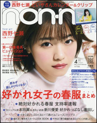 サイゾーウーマンカルチャー女性誌レビュー「non・no」女子はあざとい恐怖症? カルチャー [女性誌速攻レビュー]「non・no」4月号 合コンでの「笑顔」の作り方をレクチャー!? 「non・no」女子大生が恐れる“あざとさ” 2018/03/20 17:40 non・no女性誌レビュー 「non・no」2018年4月号(集英社) 「non・no」(集英社)4月号の付録は、レギュラーモデルで乃木坂46のメンバーである西野七瀬が編み出したオリジナルキャラクター「どいやさん」のカレンダー&クリップです。西野が高校1年生の頃に描いた教科書への落書きから生まれたという「どいやさん」は、ギョロっとした目玉のある頭部(?)から2本の足が生えている、なんとも“キモカワ”なキャラクター。クリアファイルやキーホルダーなどが、乃木坂46のファンクラブグッズとして商品化されており、ぬいぐるみがUFOキャッチャーとして登場すると即完売なんだそう! 今回のカレンダー&クリップも、「non・no」読者である女子大生より、おそらく乃木坂ファンの方に需要がありそう? 売り上げの何割かに貢献していそうな予感です。それでは、早速中身を見ていきましょう~! <トピックス> ・好かれ女子の春服まとめ ・憧れ“社会人1女”が大学時代にやっていたこと ・なりたい脚は「自分に合ったストッキング」で叶える! 好かれ女子の地道な努力? 最初にチェックするのは、メインファッション特集「好かれ女子の春服まとめ」です。「カジュアル派 翼&きれいめ派 優愛の好かれっぱなし着回し30days」「新1女菜々花の話しかけたくなるコーデ着回し30Days」「はじめまして、を成功させる!“第一印象”最高(ハート)ビューティ」と、春の新生活に向けて、「思わず話しかけたくなる」ような「浮かずに盛れる」アイテムが目白押しとのこと。 「みんな仲良く」がモットーである優等生なノンノ女子たちにとって、ファッションとは自分を表現するものというより、周囲とのコミュニケーションツールという意味合いが強いのかもしれません。「ウエストポーチを斜め掛けして“話しかけやすい雰囲気”を盛る!」「甘めラベンダーとレースで優しいオーラをまとって」「白×イエローの配色が、さわやかなイメージを後押し」「小物で今っぽアクセント。居心地のいい女子的な♪」などなど、そこかしこに好かれるための地道な努力……が散りばめられています。また、「好感度を上げたいシーンで『甘すぎ』『透けすぎ』はキケン!!」ということで、「イタくないピンク」「エロくないブラック」が紹介されていたのも、“女に嫌われないファッション”という絶妙な切り口だと思った次第です。 そして最後には「好かれ女子の最強ツールは『笑顔』と『声』!」というキャッチコピーの元、「親しみやすそう!と思わせる好印象笑顔」「話しやすい!と思わせる感情豊かな声」、はたまた「好みの彼の気を引く声」や「合コンであざとく見えない笑顔」の作り方を専門家がレクチャーしてくれていました。これらの企画からは、周囲から「あざとい」と思われることを恐怖するノンノ女子の姿が目に浮かびましたが、ここまで計算しつくしてるって、それこそあざといのでは? しかし、こういった努力のうえに、“表面上は平和でみんな仲良し”な「non・no」ワールドが成り立っているのだとしたら、ノンノ女子、なかなか侮れませんね。 次のページ ノンノモデルは女子アナへの登竜門! 12次のページ 関連記事 「non・no」が考える“男子の妄想”は少女漫画すぎ!? リアルから遠ざかる女子大生の恋愛観夫選びを妥協しても「26~27歳で結婚」すべし? 「non・no」結婚特集がモヤモヤする理由「non・no」セックス企画はエロくない!? 女子大生の悩みに寄り添う“真っ当さ”「恋愛あるある企画」が好評? 「non・no」女子の“カテゴライズされたい”願望の正体「私たちはモテて当然」の恋愛強者ぶりを発揮する、「non・no」女子大生に募るモヤモヤ