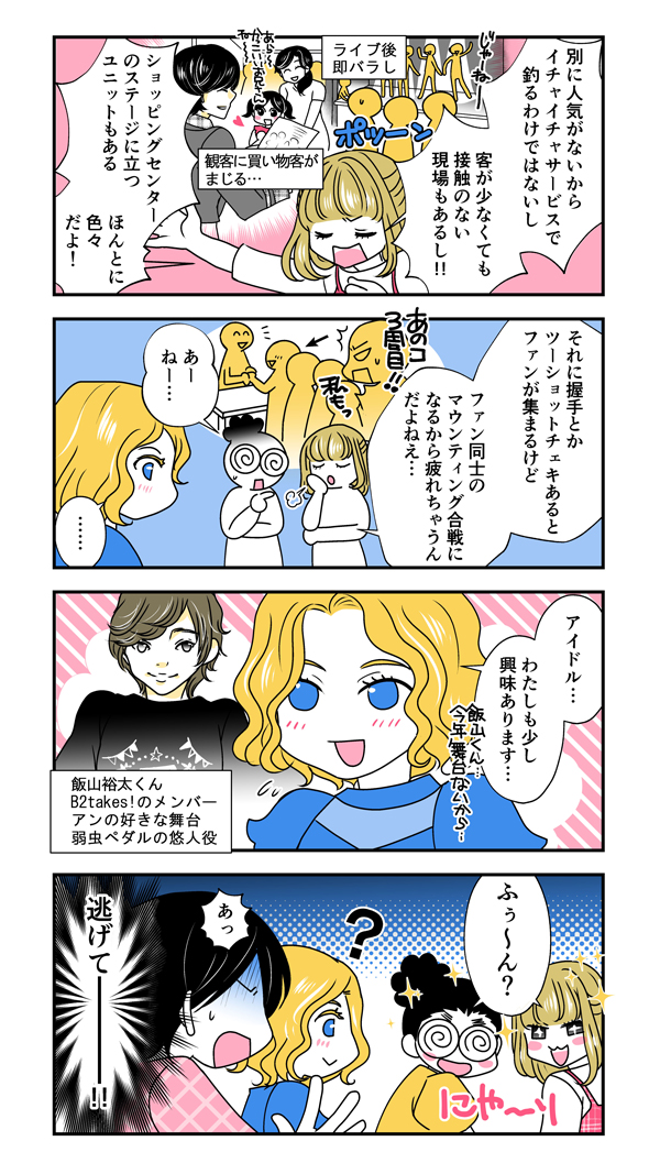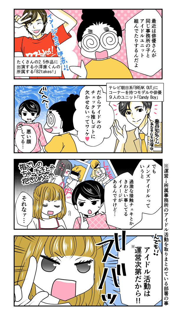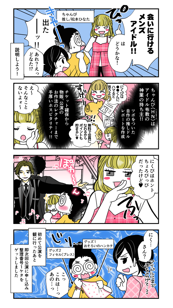 サイゾーウーマンカルチャーマンガ2.5次元の推しゴト!! 18-21回まとめ読み カルチャー 【連載】「2.5次元の推しゴト!!~イケメンにハマりましたルポ~」(吉田にく) 【マンガ】2.5次元の推しゴト!!~イケメンにハマりましたルポ~【18~21回まとめ読み】 2018/10/28 18:00 マンガ2.5次元吉田にく2.5次元の推しゴト!!~イケメンにハマりましたルポ~ 有名俳優も多く輩出している“2.5次元“の世界。 ひょんなきっかけから2.5次元にハマった漫画家・吉田にくが、2.5次元素人の編集・ちーとともに、その楽しさとおっかけ舞台裏、人気のイケメン情報までを全力レポート! こちらの記事では、過去に配信された第18回~第21回のマンガを一挙とりまとめ。2.5次元にハマってる人も、これからハマりたい人もぜひどうぞ! 会いに行ける「メンズアイドル」! 次のページ アイドルの現場にいってみよう! 12次のページ 関連記事 【マンガ】ネット配信で人生が狂った人の裏側ぶっちゃけていいスか!?【1~4話・まとめ読み】【タイ移住マンガ】は!? またまた冗談でしょ!? バンコクから帰国、再会した彼の”トンデモ”発言とは【10話】【婚約破棄マンガ】1回目の調停に「親が同席」なんて正気なの!? 異常すぎる”過干渉”!【第12回】【婚約破棄マンガ】電話も義母、書類を送っても義母! 婚約してたのは「彼」なんですけど!?【第11回】【マンガ】2.5次元の推しゴト!!~イケメンにハマりましたルポ~【15~17回まとめ読み】 その他の作品を読む