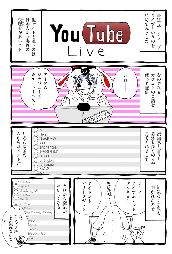 サイゾーウーマンカルチャーマンガあさの☆ひかり『ネット配信で人生が狂った人の裏側ぶっちゃけていいスか!?』【7話】アレの話は万国共通! カルチャー 【マンガ連載】ネット配信で人生が狂った人の裏側ぶっちゃけていいスか!? 【配信者マンガ】『YouTubeLive』で学んだ”お国柄”!? アレの話は世界共通!【第7回】 2018/11/03 13:00 ネット配信で人生が狂った人の裏側ぶっちゃけていいスか!?マンガあさの☆ひかり 不倫バレ、嫉妬で放火、ニセ札作りに救急車……何度警察のお世話になったって、ぜ~んぶ「配信のネタ」なんです!? マンガ『芸能界の裏側ぶっちゃけていいスか!?』で数々の芸能タブーをぶっちゃけてきた 怖いもの知らずのグラドル漫画家・あさの☆ひかりが、今度はなんと「ネット配信者の世界」を大暴露!! アブナイ配信者たちのヤバ~い裏側、ぜんぶマンガに描いちゃいます! 「YouTube Live」はじめました! 次のページ めっちゃ怒ってるやん!! 12次のページ 関連記事 【配信者マンガ】プライベートがダダ漏れ!? 「カメラの切り忘れ」が招いた”赤っ恥”事件簿!!【第5回】【タイ移住マンガ】は!? またまた冗談でしょ!? バンコクから帰国、再会した彼の”トンデモ”発言とは【10話】【マンガ】忍者と外国人、生卵焼きそばが同居する浅草…「キングオブ下町」は伊達じゃない!【東京をディグる・11話】【婚約破棄マンガ】1回目の調停に「親が同席」なんて正気なの!? 異常すぎる”過干渉”!【第12回】【婚約破棄マンガ】電話も義母、書類を送っても義母! 婚約してたのは「彼」なんですけど!?【第11回】 その他の作品を読むバックナンバーを読む