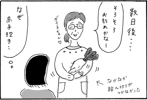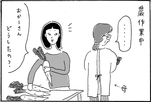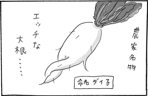 サイゾーウーマンカルチャーマンガ柿ノ種まきこ『アラサー独身女、今日も日雇いで生きてます』農家のエッチな〇〇 カルチャー 【連載】柿ノ種まきこ『アラサー独身女、今日も日雇いで生きてます』 【日雇いマンガ】特別編2『アラサー独身女、家業は農家です〜エッチな○○編〜』 2018/11/08 13:00 マンガ柿ノ種まき子日雇い ――「キツイ」「汚い」「男臭い」……なんとなく近寄りがたいイメージのある“日雇労働”。その、実態はどのようなものなのか? 日雇い労働を生業とするアラサー・柿ノ種まきこが、日雇いの日々と人間模様を紹介します。 今週からは全3回にわたり、まき子さんの家業である農家のエピソードを描いた特別編をお届けします! 特別編2『アラサー独身女、家業は農家です〜エッチな○○編〜』 農家あるある、エッチな形の野菜たち。 売り物にはなりませんが、なんか、かわいくて捨てがたいですよね。 うちではしばらく母が愛でたのち、おいしくいただきます。 何個か発掘された時は、兄弟のようにしばらく並べて置いてある時もありますよ。 ――毎週、木曜日に最新話を更新。次回も、まき子さんの家業である農家のエピソードを描いた特別編を公開します。11月15日(木)の更新をお楽しみに! 柿ノ種まきこ/@kakinotane_makiko 日雇いをしながらマンガを描くアラサー。過去には、「iVERY」にて婚活マンガ『女もつらいよ』を連載。現在はインスタグラムにて、マンガを不定期投稿。 https://www.instagram.com/kakinotane_makiko/ 最終更新:2018/11/08 13:00 店頭には並ばないやつね! 関連記事 【日雇いマンガ】特別編1『アラサー独身女、家業は農家です〜秘密のガールズトーク編〜』【日雇いマンガ】第21話 『ハマりすぎにご注意を……単純作業で合法トリップ』【日雇いマンガ】第20話 『驚愕!! 作業着1着○万のオシャレピーポー専用求人』【日雇いマンガ】第19話 『GOに入ってはGOに従え! お嬢が受けた日雇い仕事の洗礼』【日雇いマンガ】第18話 『即席!? お見合い大作戦〜倉庫の花嫁編〜』 その他の作品を読むバックナンバーを読む 次の記事 岡田結実「ヒモ希望」発言に皮肉 >