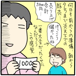 サイゾーウーマンコラム叶井俊太郎「子育てブログ」フリマ出店は後悔するほど重労働 コラム [連載]ヤリチン卒業!! 叶井俊太郎の子育て奮闘記 フリマ出店は後悔するほど重労働! 娘のブランド服やおもちゃ7万円分が〇円にしかならなかった…… 2018/11/19 19:00 ヤリチン卒業!! 叶井俊太郎の子育て奮闘記 (C)倉田真由美 小学3年生の娘ココは、ゲームセンターのUFOキャッチャーが好き。そしてかなりの確率でおもちゃを獲ってます。例えば、1回100円のマシーンでも、1,000円で3~4個は取ってます。あと、フリーマーケットが好き。そのため、うちにおもちゃやぬいぐるみがあふれまくってる! 以前、いらなくなったおもちゃを買い取り業者に売りに行ったけど、フリマ好きなココのために、ついにフリマに出店することにしました! いつかフリマで服やおもちゃを売ろうかと思っていたのですが、まず会場まで荷物を持っていくのが面倒、ずっとその場にいなければならないというのも疲れそう、商品の値段付けやおつりなどの事前準備も面倒くさそう。「だったらやめておこう……」となってました。 しかし、近所の公園での出店者募集のチラシを見つけ、ココに聞いてみると「やりたい!」とのこと。出店者は先着7人のみでしたが、行ってみると1番目だったので、余裕でしたね! 出店に向けて、商品にするものの選別、値付け、おつりの両替、おつりを入れるミニレジ(これは別のフリマで200円で買った優れもの)や折りたたみ式のイスを準備。そして売るだけではなく、子ども向けの「くじ引き」もやるので、景品も準備しました。ちなみに1万円を銀行で小銭に両替したら、手数料で540円も取られた! 妻くらたまから「アンタ! 無職でお金ないのに、そういう無駄づかいはやめてくれる!?」とマジで怒られてしまった……。 そして当日。公園まではスーツケース3つの上に入りきらなかったものを入れた段ボール1つを置いて、20分くらい歩く。台車があればもうちょっと楽なんだけど、結構きついです。到着後、出店料1,000円を払って、くじ引きで場所取りです。とはいえ、結局4店しか応募がなかったので、売る場所はどこでも問題ないんだけどね。 場所が決まったら、すぐに準備に取りかかります。レジャーシートを3つ敷いて、大量のおもちゃ、ぬいぐるみ、ココの服をドサドサと放り出した後、ココと一緒に商品をきれいに並べます。ブランド服はすべて200円、ぬいぐるみも200円、触るとムニムニとするスクイーズ系のおもちゃは100~300円。小物やガチャガチャの景品、スーパーボールはどれでも10円にしました。くじ引きはヒモを引くシンプルなもので1回30円。当たりは『ポケモン』などのキャラクター系おもちゃで、ハズレはアメやガムなどのお菓子にしました。 次のページ なぜか「フリマのプロ」と勘違いをされ…… 12次のページ 関連記事 娘が『だめんず・うぉ~か~』で映画デビュー! そこで初めてわかった、本物の子役のすごさ……オレ50歳、娘8歳なのに……突然会社を解雇になりました!娘の成長に目を見張る毎日だけど、「父ちゃんっていっぱい結婚してるの?」とバツ3がバレた!ディースクエアード&クロムハーツを思い立って処分! 定価で90万円分の査定額に驚愕大ショック!! 娘の常連服ブランドが終了……ZARAとH&Mのキッズ服ってどうですか?