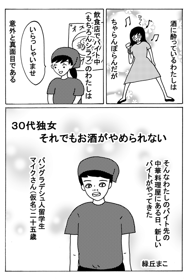 サイゾーウーマンカルチャーマンガ緑丘まこ『30代独女、それでもお酒がやめられない』【17回】中華料理屋のマイクさん カルチャー 【連載】「30代独女、それでもお酒がやめられない」(緑丘まこ) 【マンガ】バングラデシュのお国柄!? 中華料理屋・マイクさんのヤバすぎる行動!【お酒がやめられない・17回】 2018/12/15 18:00 マンガ緑丘まこ30代独女、それでもお酒がやめられない 「酒に強くも弱くもないわたしは、よくお酒に飲まれる」――。 20代から酒に飲まれつづけた漫画家・緑丘まこが酒と出会いと黒歴史を綴る、飲んだくれコミックエッセイ。土曜のひとり飲みのおともにどうぞ。 第17回:中華料理屋のマイクさん 次のページ マイクさん、近っ! 1234次のページ 関連記事 【マンガ】ふっくらタイ移住まんが~ブラック企業を辞めたらバンコクでした~【起業編・まとめ読み】【マンガ・ヤリマン引退】切れたアソコに走る激痛……「おしりの穴」クライシス!【第8回】【マンガ】「お母さん」とスピリチュアル――80年代の”上野と母”を追体験!【まとめ読み】【マンガ・ヤリマン引退】わたしの股で「名人芸」!? 切られたマンを縫われた結果……【第7回】【マンガ】月経困難症、はじめてのピル! 不安でも「飲みます」と即答したワケ【第6回】 その他の作品を読むバックナンバーを読む