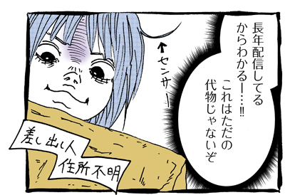 サイゾーウーマンカルチャーマンガあさの☆ひかり『ネット配信で人生が狂った人の裏側ぶっちゃけていいスか!?』【13話】凶器が家に届いたら… カルチャー 【マンガ連載】ネット配信で人生が狂った人の裏側ぶっちゃけていいスか!? 【配信者マンガ】「ガチ凶器」が家に届いたらどうする!? 対処の仕方それぞれ【第13回】 2018/12/29 13:00 マンガあさの☆ひかりネット配信で人生が狂った人の裏側ぶっちゃけていいスか!? 不倫バレ、嫉妬で放火、ニセ札作りに救急車……何度警察のお世話になったって、ぜ~んぶ「配信のネタ」なんです!? マンガ『芸能界の裏側ぶっちゃけていいスか!?』で数々の芸能タブーをぶっちゃけてきた 怖いもの知らずのグラドル漫画家・あさの☆ひかりが、今度はなんと「ネット配信者の世界」を大暴露!! 視聴者から届いたブツ 次のページ そして、暗黒放送の横山さんに届いたモノは 12次のページ 関連記事 【タイ移住マンガ】パスポート、腹巻、貴重品! はじめての国外脱出に緊張したものの【17話】【日雇いマンガ】27話『素朴な疑問にお答え! 〜タイプ別! オススメ現場〜』【マンガ・ヤリマン引退】「おっぱい」が気になるお年頃! 子どもの興味を引きたくて……【第12回】【マンガ・ヤリマン引退】「ママ、ちんちんない」――幼児の疑問に、ヤリママはこう答えた!【第11回】【マンガ】病気と就活は両立できる?「月経困難症+就職」で検索してみたら【第12回】 その他の作品を読むバックナンバーを読む