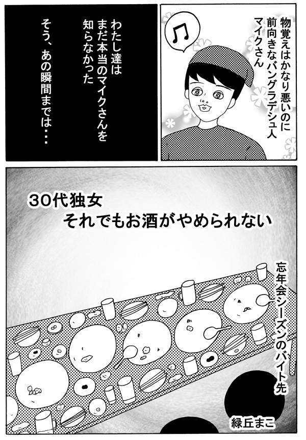 サイゾーウーマンカルチャーマンガ緑丘まこ『30代独女、それでもお酒がやめられない』【19回】マイクさんの「秘めた能力」 カルチャー 【連載】「30代独女、それでもお酒がやめられない」(緑丘まこ) 【マンガ】「使えないバイト」なんかじゃなかった! マイクさんが見せた”凄い特技”【19回・大みそかSP】 2018/12/31 18:00 マンガ緑丘まこ30代独女、それでもお酒がやめられない 「酒に強くも弱くもないわたしは、よくお酒に飲まれる」――。 20代から酒に飲まれつづけた漫画家・緑丘まこが酒と出会いと黒歴史を綴る、飲んだくれコミックエッセイ。土曜のひとり飲みのおともにどうぞ。 第19回:本当のマイクさん 次のページ 皿を片付けるマイクさんが… 1234次のページ 関連記事 【マンガ】バイト先で「使えない」と言われ数カ月……マイクさんの心情は【お酒がやめられない・18回】【配信者マンガ】「ガチ凶器」が家に届いたらどうする!? 対処の仕方それぞれ【第13回】【タイ移住マンガ】パスポート、腹巻、貴重品! はじめての国外脱出に緊張したものの【17話】【日雇いマンガ】27話『素朴な疑問にお答え! 〜タイプ別! オススメ現場〜』【マンガ・ヤリマン引退】「おっぱい」が気になるお年頃! 子どもの興味を引きたくて……【第12回】 その他の作品を読むバックナンバーを読む