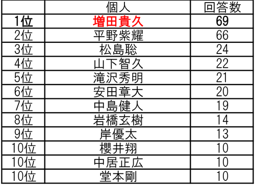 サイゾーウーマン男性アイドルSTARTO(旧ジャニーズ)18年に頑張ったジャニーズは? 男性アイドル 【ジャニーズファンアンケート 2018】 2018年に頑張ったジャニーズは? 1位はKing&Princeと増田貴久!【ジャニーズファンアンケート 2018】 2019/01/14 16:00 ジャニーズファンアンケートジャニーズ 個人の1位に輝いたのは? 個人で1位を獲得したのは、NEWS・増田。先日公開した「嫌いになったジャニーズ」ランキングでは、同グループの小山慶一郎がトップに立ちましたが、増田の活躍は多くのジャニーズファンから評価されているようです。増田については、「3人が週刊誌沙汰でも、1人頑張ってくれた」(手羽先)「スキャンダルまみれのグループで1人奮闘した」(ゆー鬱 40代)と、NEWSを支えた活躍が讃えられているよう。 2位には、King&Princeの平野。「デビューやドラマ雑誌の撮影など重なり大変だったと思うが、やりこなしていた。しょうくんの主演ドラマもありKing&Princeが世の中に広まったと思う」(28 みーくん)「事務所のプッシュが凄いな〜と思いました」(45歳しゅう)と、多忙なスケジュールを乗り切った点が評価されている様子。 3位には、パニック障害による活動休止を発表したSexy Zoneの松島。「ゆっくり休んでほしい。今は。SexyZoneみんな頑張った!」(みむ 31さい)「頑張り屋さんだから頑張り過ぎちゃたのかなぁ。ゆっくり休んで欲しい」(59才 ファン歴長いよ)「美形なのにフィーチャーされなかったけどバラエティなどでいい味出してた」(32歳、腹美)と、優しいコメントが寄せられました。 また、病気を公表したジャニーズでいうと、6位の関ジャニ∞・安田には「髄膜腫の発覚や背中と腰の骨折があったにも関わらず、ライブに立ち元気を与えてくれた」(ほの 19歳)「ご自身がものすごく辛くて大変な時でも、どこまでも人に対して優しい! 人間もしても男としても、彼ほど優しく、そして強い人はいない!」(アイランドへ行けますように 45歳)と温かい声も聞かれ、10位のKinKi Kids・堂本にも「難聴の後遺症と向き合いながらも積極的に活動してくれて感謝しかない」(酢みそ)とコメントが上がっています。 一方で「報道などされずにただひたすらアイドルを頑張った事務所タレント全員」(小山くんエブリー降板希望)「皆さんそれぞれ頑張ったと思います」(ゆっきん 35歳)「ジャニーズjrチャンネルに出演の皆さん」(はな 42歳)と、ジャニーズのほとんど全員を称賛する声も届きました。 今年、ジャニーズファンに活躍を評価されるジャニーズは誰なのか? それぞれの活動に期待したいですね。 前のページ12 最終更新:2019/01/14 16:50 みんな頑張ったと思える1年になりますように 関連記事 今年、嫌いになったジャニーズは?【ジャニーズファンアンケート 2018】(回答数911)今年、「一番衝撃だったジャニーズの出来事」を発表!【ジャニーズファンアンケート 2018】今年のジャニーズ事務所は「乱」! 漢字一文字で振り返ると?【ジャニーズファンアンケート2018】King&Prince・平野紫耀、“天然キャラ”は本物かビジネスか? 専門家がタブーに斬り込む!!King&Princeのウラ事件簿――平野・永瀬は“交際疑惑”、神宮寺の言動に批判続出 次の記事 熟女キャバクラ人気が生んだ闇 >