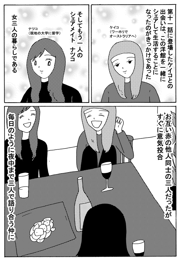 サイゾーウーマンカルチャーマンガ緑丘まこ『30代独女、それでもお酒がやめられない』【20回】親友ケイコが深夜のトイレで カルチャー 【連載】「30代独女、それでもお酒がやめられない」(緑丘まこ) 【マンガ】頼れるケイコが、深夜のトイレで……!? 女3人・シェアハウス事件簿!【20回】 2019/01/12 18:30 緑丘まこ30代独女、それでもお酒がやめられないマンガ 「酒に強くも弱くもないわたしは、よくお酒に飲まれる」――。 20代から酒に飲まれつづけた漫画家・緑丘まこが酒と出会いと黒歴史を綴る、飲んだくれコミックエッセイ。土曜のひとり飲みのおともにどうぞ。 第20回:ケイコの泥酔事件簿 ※第11回「ケイコがヤル気になった夜」参照 次のページ 姉御肌なケイコは… 1234次のページ 関連記事 【配信者マンガ】オフパコの恨みは重い!? リスナーとの”恋愛トラブル”大暴露!【第15回】【タイ移住マンガ】タイの職場を初公開! ローカルな「タウンハウス」ってどんな場所?【19話】【マンガ・ヤリマン引退】目を離すとすぐ舐めちゃう! 「お年頃」の娘にヤリママは……【第16回】【婚約破棄マンガ】彼はやっぱり来なかった――! 2回目の調停、“私”がとった選択は【第31回】【婚約破棄マンガ】「今後は出廷しない」ってそんなのアリ!? 予想外すぎる「彼の逃亡」【第30回】 その他の作品を読むバックナンバーを読む