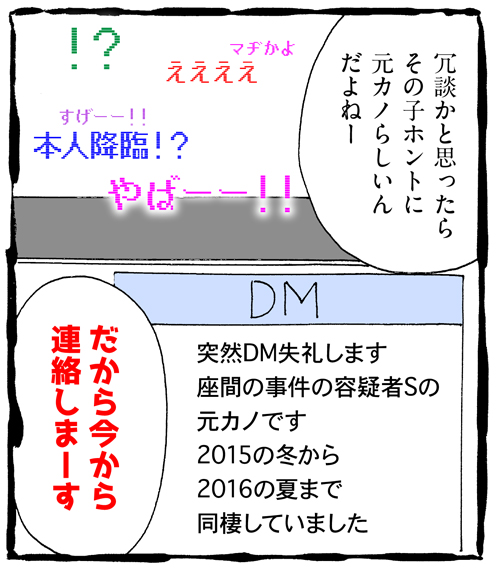 サイゾーウーマンカルチャーマンガあさの☆ひかり『ネット配信で人生が狂った人の裏側ぶっちゃけていいスか!?』【16話】殺人犯の元カノと生電話! カルチャー 【マンガ連載】ネット配信で人生が狂った人の裏側ぶっちゃけていいスか!? 【配信者マンガ】「殺人犯の元カノ」と生電話!? マスコミより早い「座間事件」ウラ話【第16回】 2019/01/19 13:00 マンガあさの☆ひかりネット配信で人生が狂った人の裏側ぶっちゃけていいスか!? 不倫バレ、嫉妬で放火、ニセ札作りに救急車……何度警察のお世話になったって、ぜ~んぶ「配信のネタ」なんです!? マンガ『芸能界の裏側ぶっちゃけていいスか!?』で数々の芸能タブーをぶっちゃけてきた 怖いもの知らずのグラドル漫画家・あさの☆ひかりが、今度はなんと「ネット配信者の世界」を大暴露!! 「殺人犯の元カノ」が連絡してきた! 次のページ そこで明かされた真実とは… 12次のページ 関連記事 【マンガ記事】運命の相手は「不潔なキモ男」!? DNA婚活で“相性最高の相手”を探した結果……【タイ移住マンガ】「日本にいる時よりも、かっこよくなったね」――タイで頑張る彼と、今後のこと【20話】【マンガ・ヤリマン引退】「パン」と「マン」の響きに動揺! あのお方が愛されるワケ【第18回】【日雇いマンガ】30話『チャームポイントはツインテール!? ベテランおばさん観察日記1』【マンガ】ピル服用で「頭痛と腹痛」? 原因をお医者さんに聞いてみた!【第19回】 その他の作品を読むバックナンバーを読む