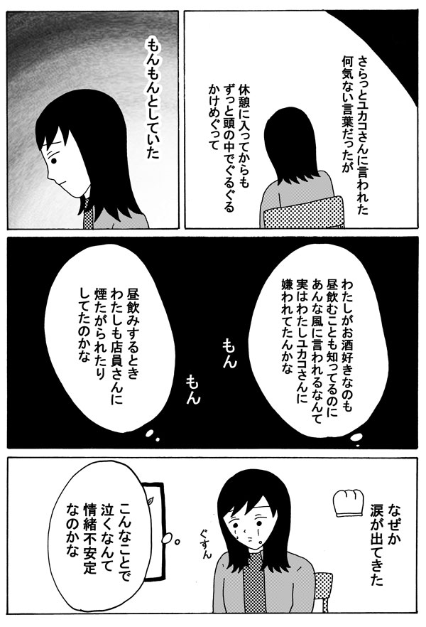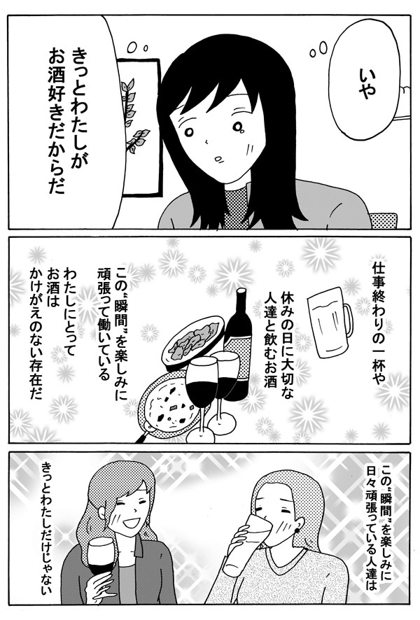 サイゾーウーマンカルチャーマンガ緑丘まこ『30代独女、それでもお酒がやめられない』【22回】「昼からお酒」は許せない? カルチャー 【連載】「30代独女、それでもお酒がやめられない」(緑丘まこ) 【マンガ】「子どもの前で酒を飲む母親」「昼からお酒」は許せない? 【22回】 2019/02/09 18:00 緑丘まこ 緑丘まこ30代独女、それでもお酒がやめられないマンガ 休憩に入ってからも 次のページ 結論 前のページ12345次のページ 関連記事 【配信者マンガ】臭い汁、悪口、詐欺通知……は序の口!? 配信者たちの年賀状!【第18回】【タイ移住マンガ】「軌道に乗ったら」なんてあり得ない!? 早くも不安のタイ暮らし【22話】【マンガレポ】オタクの課金は意味ナシ!? 配信投票が謎深い「ジュノン・スーパーボーイ・コンテスト」の光と闇【マンガ・ヤリマン引退】風呂上がりの「おまたパンパン」が気持ちいい!【第24回】【マンガ】私は「何者か」になるんだよ――茨城とヤンキーを嫌悪する、その理由【17話】 その他の作品を読むバックナンバーを読む