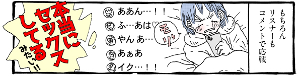 サイゾーウーマンカルチャーマンガあさの☆ひかり『ネット配信で人生が狂った人の裏側ぶっちゃけていいスか!?』【20話】「R18配信」にムラムラしたものの カルチャー 【マンガ連載】ネット配信で人生が狂った人の裏側ぶっちゃけていいスか!? 【配信者マンガ】「R18配信」で2度の衝撃!? 臨場感たっぷりの「セックス音」にムラムラしたものの【第20回】 2019/02/23 13:00 あさの☆ひかり ネット配信で人生が狂った人の裏側ぶっちゃけていいスか!?マンガあさの☆ひかり 「R18配信」で思わずモゾモゾ! * ――毎週土曜に、最新話を更新。次回をお楽しみに! あさの☆ひかり 10月3日生まれ。東京都出身。 グラビアアイドルとして活動したのち、エッセイマンガ家として多数の作品を発表。潜入取材を得意とし、社会の裏側からサブカル、芸能界まで幅広いネタをマンガにしている。 既刊に『芸能界の裏側ぶっちゃけていいスか!? 三十路グラドルのつぶやき』(ぶんか社)『何度か消されかけましたが、こりずに芸能界の裏側ぶっちゃけていいスか!? 』(同)など。 ◎あさの☆ひかりTwitter https://twitter.com/asano_hikali <バックナンバーはこちら> ■第1回~第4回・まとめ読み ■第5回~第8回・まとめ読み ■第9回~第12回・まとめ読み ■第13回~第16回・まとめ読み ■第17回……ニコ生配信者たちの年末年始! ■第18回……配信者たちの「年賀状」 ■第19回……不法侵入はできても、スタバは入れない 前のページ12 最終更新:2019/02/25 13:11 ちょっと聞いてみたいわ~ 関連記事 【タイ移住マンガ】とりあえず渡航日決めちゃおう! 怒涛の「転職&結婚」プロジェクト【24話】【マンガ・ヤリマン引退】妊婦の性欲、セックス以外でどう発散する? オナニー・AV鑑賞、そして……【第27回】【マンガ】元ヤンの同僚はいい子だった――「固定観念」に囚われた自分に、気づいた話【21話】【マンガ・ヤリマン引退】保護者の立場なのにムラムラ……!「元ヤリマン」の血が騒ぐ瞬間【第26回】【マンガ】仕事を降ろされ、格下のギャルが評価され……もうプライドが耐えられない!【20話】 その他の作品を読むバックナンバーを読む 次の記事 木村拓哉、アジア進出の皮算用 >