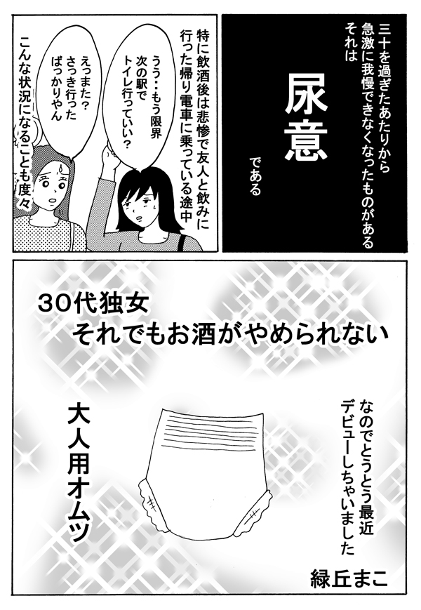 サイゾーウーマンカルチャーマンガ緑丘まこ『30代独女、それでもお酒がやめられない』【25回】30代独女、オムツデビュー カルチャー 【連載】「30代独女、それでもお酒がやめられない」(緑丘まこ) 【マンガ】30代独女、初めての「オムツデビュー」! もう我慢したくない【25回】 2019/03/23 18:00 緑丘まこ 緑丘まこ30代独女、それでもお酒がやめられないマンガ 「酒に強くも弱くもないわたしは、よくお酒に飲まれる」――。 20代から酒に飲まれつづけた漫画家・緑丘まこが酒と出会いと黒歴史を綴る、飲んだくれコミックエッセイ。土曜のひとり飲みのおともにどうぞ。 第25回:オムツデビュー 次のページ 尿意が生んだ、数々の悲劇 1234次のページ 関連記事 【マンガ】ふっくらタイ移住まんが~ブラック企業を辞めたらバンコクでした~【最終章・まとめ読み】【マンガ・ヤリマン引退】2歳児はなぜ「毛」に執着する? その心理は……【第34回】【マンガ】産婦人科の隣にラブホテル!? ビックリしたのはそれだけじゃない!【第45回】【配信者マンガ】家賃を滞納するとどうなる!?「バックレ配信者」の斜め上すぎる結末!【第22回】【タイ移住マンガ】私たち、こうして「バンコク在住」夫婦になりました【最終話】 その他の作品を読むバックナンバーを読む