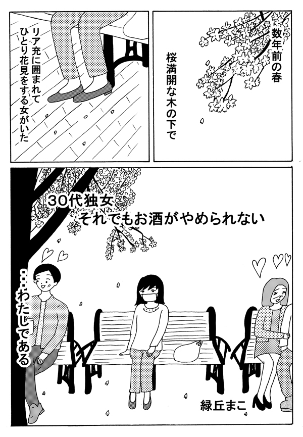 サイゾーウーマンカルチャーマンガ緑丘まこ『30代独女、それでもお酒がやめられない』【26回】「ひとり花見」が最高な理由 カルチャー 【連載】「30代独女、それでもお酒がやめられない」(緑丘まこ) 【マンガ】リア充に挟まれて「ひとり花見」! ツナマヨビールで最高の”自分デート”【26回】 2019/04/06 18:00 緑丘まこ マンガ緑丘まこ30代独女、それでもお酒がやめられない 「酒に強くも弱くもないわたしは、よくお酒に飲まれる」――。 20代から酒に飲まれつづけた漫画家・緑丘まこが酒と出会いと黒歴史を綴る、飲んだくれコミックエッセイ。土曜のひとり飲みのおともにどうぞ。 第26回:お花見で「自分デート」 次のページ リア充たちめ… 12345次のページ 関連記事 【マンガ・ヤリマン引退】SMの女王様、「幼児向けキャラ」にご執心! その理由は……【第38回】【マンガ・ヤリマン引退】箱へル、SM、エロ小説……「ゲス女子会」に娘が反応!【第37回】【マンガ】新しい職場で大寝坊!それなのに……理解ありすぎ!?【第51回】【毒親支配マンガ】彼のママは専業主婦だった――「条件付き」だったはずなのに!?【2話】【マンガ】近所のコンビニで短期バイト! 「不利な条件」でも大丈夫?【第50回】 その他の作品を読むバックナンバーを読む