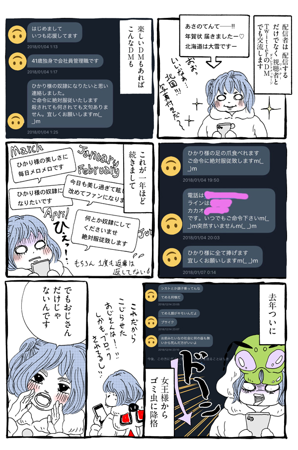 サイゾーウーマンカルチャーマンガあさの☆ひかり『ネット配信で人生が狂った人の裏側ぶっちゃけていいスか!?』【21-24話】配信者マンガまとめ読み カルチャー 【マンガ連載】ネット配信で人生が狂った人の裏側ぶっちゃけていいスか!? 【マンガ】ネット配信で人生が狂った人の裏側ぶっちゃけていいスか!?【21~24話・まとめ読み】 2019/04/06 13:00 あさの☆ひかり ネット配信で人生が狂った人の裏側ぶっちゃけていいスか!?マンガあさの☆ひかり 不倫バレ、嫉妬で放火、ニセ札作りに救急車……何度警察のお世話になったって、ぜ~んぶ「配信のネタ」なんです!? マンガ『芸能界の裏側ぶっちゃけていいスか!?』で数々の芸能タブーをぶっちゃけてきた 怖いもの知らずのグラドル漫画家・あさの☆ひかりが、今度はなんと「ネット配信者の世界」を大暴露!! 視聴者とDM交流 次のページ 家賃を滞納するとどうなる? 1234次のページ 関連記事 【マンガ・ヤリマン引退】SMの女王様、「幼児向けキャラ」にご執心! その理由は……【第38回】【マンガ・ヤリマン引退】箱へル、SM、エロ小説……「ゲス女子会」に娘が反応!【第37回】【マンガ】新しい職場で大寝坊!それなのに……理解ありすぎ!?【第51回】【毒親支配マンガ】彼のママは専業主婦だった――「条件付き」だったはずなのに!?【2話】【マンガ】近所のコンビニで短期バイト! 「不利な条件」でも大丈夫?【第50回】 その他の作品を読むバックナンバーを読む