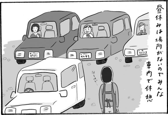 サイゾーウーマンカルチャーマンガ柿ノ種まきこ『アラサー独身女、今日も日雇いで生きてます』畑に突如出現したVIPルーム カルチャー 【連載】柿ノ種まきこ『アラサー独身女、今日も日雇いで生きてます』 【日雇いマンガ】42話『目撃!! 畑の中に突如現れたVIP専用休憩室』 2019/04/11 13:00 柿ノ種まきこ マンガ柿ノ種まき子日雇い ――「キツイ」「汚い」「男臭い」……なんとなく近寄りがたいイメージのある“日雇労働”。その、実態はどのようなものなのか? 日雇い労働を生業とするアラサー・柿ノ種まきこが、日雇いの日々と人間模様を紹介します。 第42話『目撃!! 畑の中に突如現れたVIP専用休憩室』 田舎の日雇いでありがちな車内休憩。 みんな独自に快適さを求めて、VIPルームを作りだす強者も! 居心地良すぎて休憩時間をすぎてしまわないように要注意……。 ――毎週、木曜日に最新話を更新。次回43話は年4月18日(木)の更新予定です。 柿ノ種まきこ/@kakinotane_makiko 日雇いをしながらマンガを描くアラサー。過去には、「iVERY」にて婚活マンガ『女もつらいよ』を連載。現在はインスタグラムにて、マンガを不定期投稿。 https://www.instagram.com/kakinotane_makiko/ 最終更新:2019/04/11 13:00 関連記事 【日雇いマンガ】41話『化粧品会社の現場で出会ったとある主婦さんのお話 〜後編〜』【日雇いマンガ】40話『化粧品会社の現場で出会ったとある主婦さんのお話 〜前編〜』【日雇いマンガ】39話『プチ潔癖さんにおすすめな◯◯の現場』【日雇いマンガ】38話『SAY YES……朝には声で感じ合おうよ〜強制参加のナゾ儀式〜』【日雇いマンガ】37話『君の名は〜性別を超える作業服マジック〜』 その他の作品を読むバックナンバーを読む 次の記事 ジャニーズが禁断の“パパトーク”披露! >