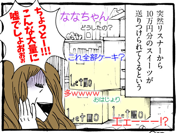 サイゾーウーマンカルチャーマンガあさの☆ひかり『ネット配信で人生が狂った人の裏側ぶっちゃけていいスか!?』【26話】50万円のスイーツ事件簿! カルチャー 【マンガ連載】ネット配信で人生が狂った人の裏側ぶっちゃけていいスか!? 【配信者マンガ】「50万円分」のスイーツ事件簿! 嫌がらせの犯人は…?【第26回】 2019/04/20 13:00 あさの☆ひかり マンガあさの☆ひかりネット配信で人生が狂った人の裏側ぶっちゃけていいスか!? 不倫バレ、嫉妬で放火、ニセ札作りに救急車……何度警察のお世話になったって、ぜ~んぶ「配信のネタ」なんです!? マンガ『芸能界の裏側ぶっちゃけていいスか!?』で数々の芸能タブーをぶっちゃけてきた 怖いもの知らずのグラドル漫画家・あさの☆ひかりが、今度はなんと「ネット配信者の世界」を大暴露!! ヤ○オクでお小遣い稼ぎ 次のページ 配送先をたどるも… 12次のページ 関連記事 【マンガ・ヤリマン引退】娘2歳、なんでもヤリたいお年頃……汚いモノは綺麗にしましょ!?【第42回】【日雇いマンガ】43話『若さという名の暴力〜キラキラ女子大生質問攻めの乱〜』【マンガ・ヤリマン引退】私、だから筋トレできないんです!? ヤリママの言い訳【第41回】【マンガ】「ピル太り」実録レポート! 生活を変えてないのに、みるみる体重が増えていく【第57回】【毒親支配マンガ】「まさか浮気?」彼の誕生日、何度もかかってくる電話。その相手は……【6話】 その他の作品を読むバックナンバーを読む