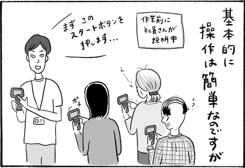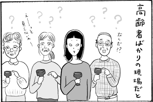 サイゾーウーマンカルチャーマンガ柿ノ種まきこ『アラサー独身女、今日も日雇いで生きてます』【漫画】若者に群がる高齢男女 カルチャー 【連載】柿ノ種まきこ『アラサー独身女、今日も日雇いで生きてます』 【日雇いマンガ】45話『一度じゃ足りない……もう一回……! 若者に群がる高齢男女』 2019/05/02 13:00 柿ノ種まきこ マンガ柿ノ種まき子日雇い ――「キツイ」「汚い」「男臭い」……なんとなく近寄りがたいイメージのある“日雇労働”。その、実態はどのようなものなのか? 日雇い労働を生業とするアラサー・柿ノ種まきこが、日雇いの日々と人間模様を紹介します。 第45話『一度じゃ足りない……もう一回……! 若者に群がる高齢男女』 ピッキング作業でよく使う端末機器。メーカーも形も様々なので、現場に行ったらまず社員さんに使い方を教えてもらいます。 でもご高齢の方には厳しい小さい液晶……小さいボタン……!! 質問に答えていると囲まれて、ちょっとしたパソコン教室みたいになっちゃう……! 愛すべき方達です。 ――毎週、木曜日に最新話を更新。次回46話は年5月9日(木)の更新予定です。 柿ノ種まきこ/@kakinotane_makiko 日雇いをしながらマンガを描くアラサー。過去には、「iVERY」にて婚活マンガ『女もつらいよ』を連載。現在はインスタグラムにて、マンガを不定期投稿。 https://www.instagram.com/kakinotane_makiko/ 最終更新:2019/05/08 01:23 覚える気がない人もいるよね。 関連記事 【日雇いマンガ】44話『派遣先でエンドレス待機!! そのワケとは……!?』【日雇いマンガ】43話『若さという名の暴力〜キラキラ女子大生質問攻めの乱〜』【日雇いマンガ】42話『目撃!! 畑の中に突如現れたVIP専用休憩室』【日雇いマンガ】41話『化粧品会社の現場で出会ったとある主婦さんのお話 〜後編〜』【日雇いマンガ】40話『化粧品会社の現場で出会ったとある主婦さんのお話 〜前編〜』 その他の作品を読むバックナンバーを読む 次の記事 役作りを酷評された朝ドラ出演者 >