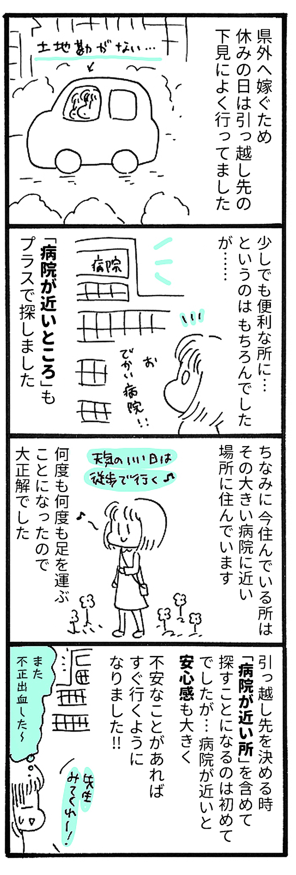 サイゾーウーマンカルチャーマンガ【62回】引っ越し先、選ぶ基準は カルチャー 【連載】私の生理、「病名」がつきました。~月経困難症、ピルに漢方あれこれ5年試してみたら~ 【マンガ】引っ越し先、選ぶ基準は「○○が近いこと」!? 人と違う「必須条件」【第62回】 2019/05/06 18:00 まお マンガ私の生理、「病名」がつきました。月経困難症 「生理痛なんて、みんな一緒!」 1カ月ごとにやってくる、尋常じゃない腹痛・寒気・吐き気……。 周囲の言葉を信じて10数年も耐え続けた「生理痛」、医者にかかってみたらビョーキと診断されちゃった!? 30歳から治療を開始した「月経困難症」との向き合い方をつづる、日常闘病コミックエッセイ。 「病院」は必須条件! ――「私の生理、病名がつきました。」は、毎週日・月・火の週3回更新になります。お楽しみに! <著者プロフィール> まお 月経困難症。体験した事や思った事を4コマ漫画にしています。自分の体、大切な人の体を考える事や、行動する事のきっかけになればうれしいです。ポジティブに生きてるオタク。 <バックナンバーはこちら> ■第1回~第10回まとめ読み……私の生理、ビョーキでした!? ■第11回~第20回まとめ読み……ピル服用、7カ月の間に起きたこと ■第21回~第30回まとめ読み……ピル服用で「不正出血」が止まらない!? ■第31回~第40回まとめ読み……「生理を知らない成人男性」って実在したの!? ■第41回~第50回まとめ読み……卵巣に「のう腫」が見つかったらどうする? 【第51回】新しい職場で大寝坊! 【第52回】30代で更年期障害!? 【第53回】ピル由来と思しき「新たな症状」 【第54回】3度めの「低容量ピル」 【第55回】「不正出血」が起きたワケ 【第56回】ピルを飲むと太るって本当? 【第57回】「ピル太り」実録レポート! 【第58回】ピル太りに効いたダイエット方法 【第59回】自己管理できない人、じゃない! 【第60回】初めて知った「太った人」の辛さ 【第61回】「心無い言葉」への対処法 最終更新:2019/05/06 18:00 コンビニのあるなしも譲れないわ! 関連記事 【31~40話】ヤリマン引退!~マンを持して育児はじめました~【マンガ・まとめ読み】【21~30話】ヤリマン引退!~マンを持して育児はじめました~【マンガ・まとめ読み】【月経困難症マンガ】卵巣に「のう腫」が見つかったらどうする?【第41回~第50回まとめ読み】【毒親支配マンガ】結婚の挨拶、いよいよ義母と初対面! 私の印象良くないよね……?【10話】【月経困難症マンガ】「生理を知らない成人男性」って実在したの!?【第31回~第40回まとめ読み】 その他の作品を読む 次の記事 小4の放課後問題、親もマジでつらい >