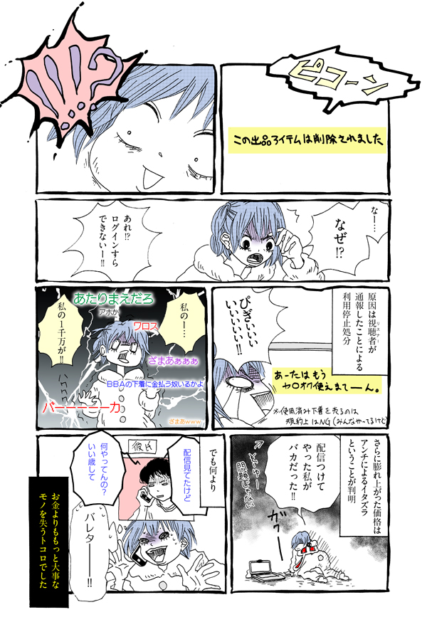 サイゾーウーマンカルチャーマンガあさの☆ひかり『ネット配信で人生が狂った人の裏側ぶっちゃけていいスか!?』【25-28話】配信者マンガまとめ読み カルチャー 【マンガ連載】ネット配信で人生が狂った人の裏側ぶっちゃけていいスか!? 【マンガ】ネット配信で人生が狂った人の裏側ぶっちゃけていいスか!?【25~28話・まとめ読み】 2019/05/11 13:00 あさの☆ひかり マンガあさの☆ひかりネット配信で人生が狂った人の裏側ぶっちゃけていいスか!? 不倫バレ、嫉妬で放火、ニセ札作りに救急車……何度警察のお世話になったって、ぜ~んぶ「配信のネタ」なんです!? マンガ『芸能界の裏側ぶっちゃけていいスか!?』で数々の芸能タブーをぶっちゃけてきた 怖いもの知らずのグラドル漫画家・あさの☆ひかりが、今度はなんと「ネット配信者の世界」を大暴露!! 「パンツ売り」で一攫千金!? 次のページ 50万円かけたイヤガラセ 1234次のページ 関連記事 【マンガ・ヤリマン引退】雷門や車夫よりも!? 「金のうんこ」が2歳児に与えるインパクト【第44回】【マンガ・ヤリマン引退】浅草名物「人力車」に乗ってみたい! 娘より”乗り気”なママの欲望【第43回】【マンガ】半年間で「卵巣のう腫」はどうなった? 実家暮らしと「バイト生活」を終えて【第63回】【毒親支配マンガ】彼母が「今まで何人か見てきた」元カノたち……。私に下す評価は!?【12話】【マンガ】引っ越し先、選ぶ基準は「○○が近いこと」!? 人と違う「必須条件」【第62回】 その他の作品を読むバックナンバーを読む