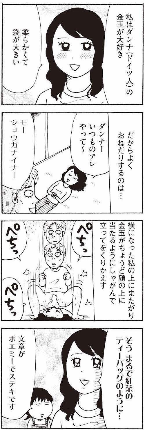 サイゾーウーマンカルチャーマンガ本当にあった笑える話【漫画】ダンナとの恒例儀式 カルチャー 『本当にあった笑える話』(ぶんか社より) 【マンガ・私のエッチなカミングアウト】妻がドイツ人ダンナにおねだりするいつもの“アレ” 2019/06/30 11:00 『本当にあった笑える話』編集部 マンガ漫画本当にあった笑える話 【「本当にあった笑える話」(ぶんか社)より】 好きなこと 〜東京都・30歳・パート・土井津仁妻さんからのお便り〜 ©桜木さゆみ/ぶんか社 『本当にあった笑える話』シリーズ誌では、みなさまからの投稿を随時募集しております。 →投稿は【こちらから】 ★テーマは「芸能人目撃談」「赤っ恥エピソード」「ペットトラブル」など幅広く募集中! 最終更新:2019/06/30 11:00 夫婦も性癖もいろいろ 関連記事 【マンガ・修羅場体験談!】ホストクラブで意気投合した女に衝撃の事実発覚で乱闘騒ぎ!【マンガ・溺愛ペットエピソード】かまってほしい猫がとった仰天行動とは……!?【マンガ・トンデモ病院体験談!】初胃カメラで死にかけ! 醜態をさらすハメになった女【マンガ・激ヤバ恐怖体験談!】真夜中のラブホテルに突然現れたナゾの女の正体とは!?【マンガ・絶望詐欺体験談!】骨折した友人がお見舞いを懇願するワケ その他の作品を読む 次の記事 契約解除された芸能人3人 >