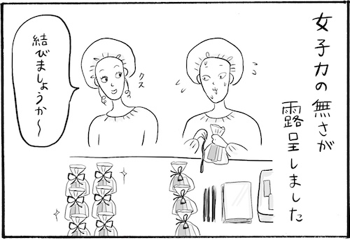 サイゾーウーマンカルチャーマンガ柿ノ種まきこ『アラサー独身女、今日も日雇いで生きてます』【漫画】単純作業で起きた悲劇 カルチャー 【連載】柿ノ種まきこ『アラサー独身女、今日も日雇いで生きてます』 【日雇いマンガ】56話『誰でもできる!? 簡単作業の落とし穴』 2019/07/18 13:00 柿ノ種まきこ マンガ柿ノ種まき子日雇い ――「キツイ」「汚い」「男臭い」……なんとなく近寄りがたいイメージのある“日雇労働”。その、実態はどのようなものなのか? 日雇い労働を生業とするアラサー・柿ノ種まきこが、日雇いの日々と人間模様を紹介します。 第56話『誰でもできる!? 簡単作業の落とし穴』 日雇いにありがちな「誰にでも簡単な作業!」のはずが……なんだか難しいぞ!? 女子力が試される現場でした。 ――毎週、木曜日に最新話を更新。次回57話は年7月25日(木)の更新予定です。 柿ノ種まきこ/@kakinotane_makiko 日雇いをしながらマンガを描くアラサー。過去には、「iVERY」にて婚活マンガ『女もつらいよ』を連載。現在はインスタグラムにて、マンガを不定期投稿。 https://www.instagram.com/kakinotane_makiko/ 最終更新:2019/07/18 13:00 関連記事 【日雇いマンガ】『アラサー独身女、今日も日雇いで生きてます』【36~42話まとめ読み】【日雇いマンガ】『アラサー独身女、今日も日雇いで生きてます』【29~35話まとめ読み】【日雇いマンガ】『アラサー独身女、今日も日雇いで生きてます』【22~28話まとめ読み】【日雇いマンガ】『アラサー独身女、今日も日雇いで生きてます』【15~21話まとめ読み】【日雇いマンガ】『アラサー独身女、今日も日雇いで生きてます』【8~14話まとめ読み】 その他の作品を読むバックナンバーを読む 次の記事 文化服装学院生が抱く、“政治と表現” >