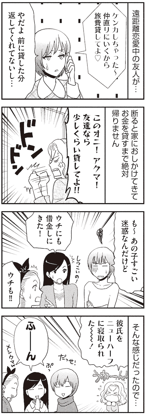 サイゾーウーマンカルチャーマンガ本当にあった笑える話【漫画】お金で友情が壊れる時 カルチャー 『本当にあった笑える話』(ぶんか社より) 【マンガ・金銭トラブル】ニューハーフに彼氏を寝取られた友人が、私を「鬼」と罵ったワケ 2019/08/07 11:00 『本当にあった笑える話』編集部 本当にあった笑える話マンガ漫画 【「本当にあった笑える話」(ぶんか社)より】 遠距離恋愛 〜高知県・22歳・事務・シロクロネコさんからのお便り〜 ©小谷梓/ぶんか社 『本当にあった笑える話』シリーズ誌では、みなさまからの投稿を随時募集しております。 →投稿は【こちらから】 ★テーマは「芸能人目撃談」「赤っ恥エピソード」「ペットトラブル」など幅広く募集中! 最終更新:2019/08/07 11:00 自業自得 関連記事 【マンガ・修羅場体験談!】ホストクラブで意気投合した女に衝撃の事実発覚で乱闘騒ぎ!【マンガ・私のエッチなカミングアウト】妻がドイツ人ダンナにおねだりするいつもの“アレ”【マンガ・トンデモ病院体験談!】初胃カメラで死にかけ! 醜態をさらすハメになった女【マンガ・激ヤバ恐怖体験談!】真夜中のラブホテルに突然現れたナゾの女の正体とは!?【マンガ・絶望詐欺体験談!】骨折した友人がお見舞いを懇願するワケ その他の作品を読む 次の記事 蛍原、ピンでも心配ないと関係者談 >