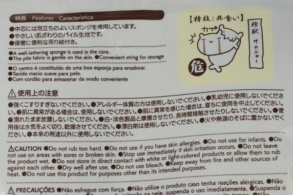 サイゾーウーマン暮らし100均・雑貨ダイソーの珍獣・サカニャーとは? 暮らし 【100均ずぼらシュラン】 【100均ずぼらシュラン】ダイソーの珍獣・サカニャーとは? 柔らか生地がたまらない「アニマルボディスポンジ」 2019/09/05 17:50 ずぼら均子 ダイソー100均100均ずぼらシュラン 安くてお得に日用品を買いに行ったつもりが、あれもこれもとカゴに入れてしまう100均ショップ。「超便利!」とほくそ笑むグッズもあれば、「買わなきゃよかった……」なトホホなグッズも潜む、魑魅魍魎な100均ワールドをズボラなアラサー女子がご案内! 私見全開でアイテムを斬る「ダイソーずぼらシュラン」開店です★ 今日のダイソーアイテム【アニマルボディスポンジ】 便利度:★★★★☆(コットンパイルの生地がやさしい肌ざわり) コスパ:★★★★☆(もう少し大きめのサイズがよかったかな) かわいさ:★★★★★(サカニャー君の特技は共食いらしい…!) 先日愛用していたボディスポンジが寿命を迎えてしまいました。しかし、ダイソーで見つけた「アニマルボディスポンジ」があまりにキュートなので、思わず購入! パッと見はネコかと思って手に取ったのですが、よく見てみるとネコと魚が混ざったような不思議な生き物……。「おハダにやさしいコットンパイル」とのことで、触り心地はどんなもんでしょう? パッケージを確認すると、謎の生物の名前は「サカニャー」であることが発覚。しかも、プロフィールには「共食い」が特技だと紹介されています。つぶらな瞳をしているクセに、なんて恐ろしい特技なのでしょう。頭か胴体かわかりませんが、本体に吊り紐がついているのは片づけやすくて良いですね。ネットを見ると、キャラクターをモチーフにしたボディスポンジはいろいろあったのですが、大体600円くらいが相場のよう。 次のページ 実際に、使い心地をチェック 12次のページ 関連記事 【100均ずぼらシュラン】ダイソー「LEDインテリア置物(月)」、ボディはチープでも点灯すると?【100均ずぼらシュラン】ダイソー「ミニレターセット」、100円クオリティを超えた可愛さ!【100均ずぼらシュラン】100円でネコの肉球&鳴き声を堪能! ダイソー「ネコの手キーホルダー」【100均ずぼらシュラン】上から量がわかる! ダイソー「置いて量れる計量スプーン」は地味に活躍!?【100均ずぼらシュラン】小鼻に最適!? セリア「歯ブラシ型ブラシ 01 フェイス」の質感は……