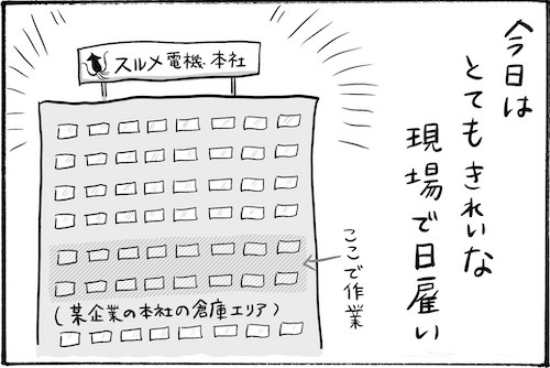 サイゾーウーマンカルチャーマンガ柿ノ種まきこ『アラサー独身女、今日も日雇いで生きてます』【漫画】ランチで感じる格差社会 カルチャー 【連載】柿ノ種まきこ『アラサー独身女、今日も日雇いで生きてます』 【日雇いマンガ】64話『肩身狭すぎ!? 某企業のオシャレ社員食堂で目の当たりにした格差』 2019/09/12 13:00 柿ノ種まきこ マンガ柿ノ種まき子日雇い ――「キツイ」「汚い」「男臭い」……なんとなく近寄りがたいイメージのある“日雇労働”。その、実態はどのようなものなのか? 日雇い労働を生業とするアラサー・柿ノ種まきこが、日雇いの日々と人間模様を紹介します。 第64話『肩身狭すぎ!? 某企業のオシャレ社員食堂で目の当たりにした格差』 きれいすぎるオフィスの雰囲気にたじろぐ日雇いスタッフたち……。 あまりにきれいな現場も考えものかもしれませんね……! ――毎週、木曜日に最新話を更新。次回65話は年9月19日(木)の更新予定です。 柿ノ種まきこ/@kakinotane_makiko 日雇いをしながらマンガを描くアラサー。過去には、「iVERY」にて婚活マンガ『女もつらいよ』を連載。現在はインスタグラムにて、マンガを不定期投稿。 https://www.instagram.com/kakinotane_makiko/ 最終更新:2019/09/15 10:37 関連記事 【日雇いマンガ】『アラサー独身女、今日も日雇いで生きてます』【36~42話まとめ読み】【日雇いマンガ】『アラサー独身女、今日も日雇いで生きてます』【29~35話まとめ読み】【日雇いマンガ】『アラサー独身女、今日も日雇いで生きてます』【22~28話まとめ読み】【日雇いマンガ】『アラサー独身女、今日も日雇いで生きてます』【15~21話まとめ読み】【日雇いマンガ】『アラサー独身女、今日も日雇いで生きてます』【8~14話まとめ読み】 その他の作品を読むバックナンバーを読む 次の記事 関ジャニ∞、“4人”の冠番組に「物足りない」 >