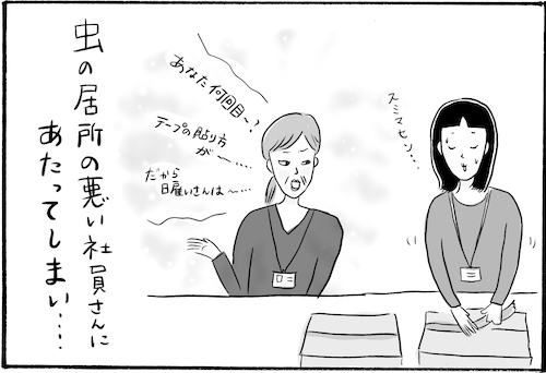 サイゾーウーマンカルチャーマンガ柿ノ種まきこ『アラサー独身女、今日も日雇いで生きてます』【漫画】お局社員をダマらせる方法 カルチャー 【連載】柿ノ種まきこ『アラサー独身女、今日も日雇いで生きてます』 【日雇いマンガ】65話『イライラMAX!! お局社員によるパワハラを撃退する方法とは!?』 2019/09/19 13:00 柿ノ種まきこ マンガ柿ノ種まき子日雇い ――「キツイ」「汚い」「男臭い」……なんとなく近寄りがたいイメージのある“日雇労働”。その、実態はどのようなものなのか? 日雇い労働を生業とするアラサー・柿ノ種まきこが、日雇いの日々と人間模様を紹介します。 第65話『イライラMAX!! お局社員によるパワハラを撃退する方法とは!?』 いきなり喧嘩腰の社員さん……こんな現場にあたってしまったら、 イライラを作業に昇華! いつの間にやらすっかり作業が進んで一石二鳥!? ――毎週、木曜日に最新話を更新。次回66話は年9月26日(木)の更新予定です。 柿ノ種まきこ/@kakinotane_makiko 日雇いをしながらマンガを描くアラサー。過去には、「iVERY」にて婚活マンガ『女もつらいよ』を連載。現在はインスタグラムにて、マンガを不定期投稿。 https://www.instagram.com/kakinotane_makiko/ 最終更新:2019/09/19 13:00 関連記事 【日雇いマンガ】『アラサー独身女、今日も日雇いで生きてます』【36~42話まとめ読み】【日雇いマンガ】『アラサー独身女、今日も日雇いで生きてます』【29~35話まとめ読み】【日雇いマンガ】『アラサー独身女、今日も日雇いで生きてます』【22~28話まとめ読み】【日雇いマンガ】『アラサー独身女、今日も日雇いで生きてます』【15~21話まとめ読み】【日雇いマンガ】『アラサー独身女、今日も日雇いで生きてます』【8~14話まとめ読み】 その他の作品を読むバックナンバーを読む 次の記事 ダイソーの「ツナ缶スプーン」レビュー >