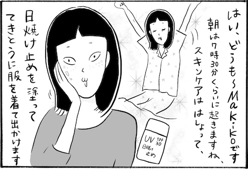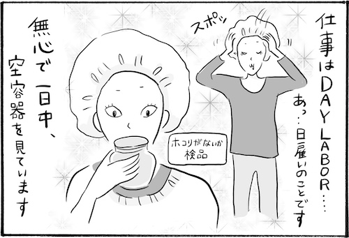 サイゾーウーマンカルチャーマンガ柿ノ種まきこ『アラサー独身女、今日も日雇いで生きてます』【漫画】意識高めの日雇い女 カルチャー 【連載】柿ノ種まきこ『アラサー独身女、今日も日雇いで生きてます』 【日雇いマンガ】68話『目指すは人気インフルエンサー〜日雇い女のワンランク上の日常〜』 2019/10/10 13:00 柿ノ種まきこ 日雇いマンガ柿ノ種まき子 ――「キツイ」「汚い」「男臭い」……なんとなく近寄りがたいイメージのある“日雇労働”。その、実態はどのようなものなのか? 日雇い労働を生業とするアラサー・柿ノ種まきこが、日雇いの日々と人間模様を紹介します。 第68話『目指すは人気インフルエンサー〜日雇い女のワンランク上の日常〜』 なんだかやる気の出ない日ってありますよね……。 そんな日は「まきこのモーニングルーティン★」……と脳内vloger(ブイロガー)となって1日を乗り切っています。 テキパキ動けてオススメのライフハックです! ――毎週、木曜日に最新話を更新。次回69話は年10月17日(木)の更新予定です。 柿ノ種まきこ/@kakinotane_makiko 日雇いをしながらマンガを描くアラサー。過去には、「iVERY」にて婚活マンガ『女もつらいよ』を連載。現在はインスタグラムにて、マンガを不定期投稿。 https://www.instagram.com/kakinotane_makiko/ 最終更新:2019/10/10 13:00 関連記事 【日雇いマンガ】『アラサー独身女、今日も日雇いで生きてます』【36~42話まとめ読み】【日雇いマンガ】『アラサー独身女、今日も日雇いで生きてます』【29~35話まとめ読み】【日雇いマンガ】『アラサー独身女、今日も日雇いで生きてます』【22~28話まとめ読み】【日雇いマンガ】『アラサー独身女、今日も日雇いで生きてます』【15~21話まとめ読み】【日雇いマンガ】『アラサー独身女、今日も日雇いで生きてます』【8~14話まとめ読み】 その他の作品を読むバックナンバーを読む 次の記事 ダイソーのノートがもはやアレ! >