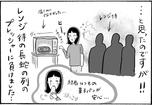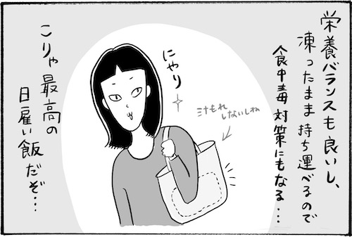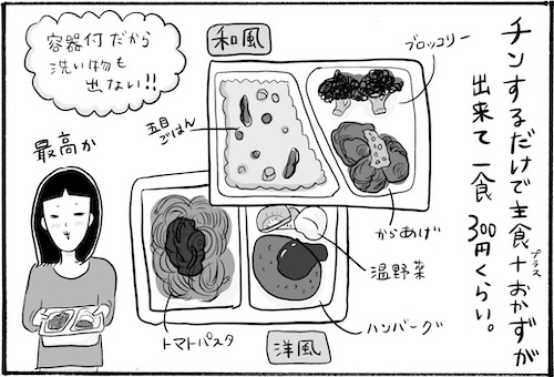 サイゾーウーマンカルチャーマンガ柿ノ種まきこ『アラサー独身女、今日も日雇いで生きてます』【漫画】長蛇の列の圧力 カルチャー 【連載】柿ノ種まきこ『アラサー独身女、今日も日雇いで生きてます』 【日雇いマンガ】72話『日雇い飯!不動の王者・菓子パンを脅かす新アイテム登場!?』 2019/11/07 13:00 柿ノ種まきこ マンガ柿ノ種まき子日雇い ――「キツイ」「汚い」「男臭い」……なんとなく近寄りがたいイメージのある“日雇労働”。その、実態はどのようなものなのか? 日雇い労働を生業とするアラサー・柿ノ種まきこが、日雇いの日々と人間模様を紹介します。 第72話『日雇い飯!不動の王者・菓子パンを脅かす新アイテム登場!?』 冷凍食品って本当おいしくなりましたよね。特にこの定食みたいになっているシリーズは 本当に便利です……! が、 日雇い飯としてはちょっと不向きでした。 ――毎週、木曜日に最新話を更新。次回73話は年11月14日(木)の更新予定です。 柿ノ種まきこ/@kakinotane_makiko 日雇いをしながらマンガを描くアラサー。過去には、「iVERY」にて婚活マンガ『女もつらいよ』を連載。現在はインスタグラムにて、マンガを不定期投稿。 https://www.instagram.com/kakinotane_makiko/ ★LINEスタンプ大好評発売中! 購入はコチラから→『柿ノ種まきこの日雇いスタンプ』 最終更新:2019/11/07 13:00 関連記事 【日雇いマンガ】『アラサー独身女、今日も日雇いで生きてます』【36~42話まとめ読み】【日雇いマンガ】『アラサー独身女、今日も日雇いで生きてます』【29~35話まとめ読み】【日雇いマンガ】『アラサー独身女、今日も日雇いで生きてます』【22~28話まとめ読み】【日雇いマンガ】『アラサー独身女、今日も日雇いで生きてます』【15~21話まとめ読み】【日雇いマンガ】『アラサー独身女、今日も日雇いで生きてます』【8~14話まとめ読み】 その他の作品を読むバックナンバーを読む 次の記事 「ちゃお」12月号付録レビュー >