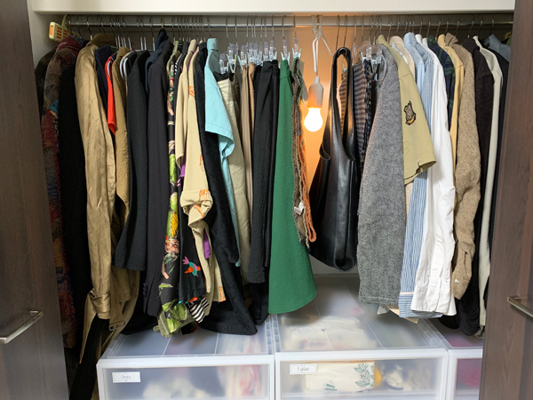 サイゾーウーマン暮らし住まいクローゼット上段は「ダイソー」! 暮らし 伊藤まきの「お片付けSOS」相談! 「ニトリ」ハンガー&「ダイソー」布製ボックスが正解! クローゼットの“イライラ解消”テク 2019/11/04 19:30 伊藤まき ダイソー100均「お片付け・お掃除SOS」伊藤まき 100均ライトで暗いクローゼットを照らす! [After] ハンガーを揃えて、ストレス激減! 中央に、100均のLEDライトを吊るしてクローゼット内を明るくチェンジ。ライト右側には、旦那さまの洋服を。左側には、奥様の洋服を吊るします。着る服がないと悩んでいたのは、着るときにシワが目立っていたせいもあります。洋服は、吊るすほうが風通しも良く劣化も防げます。 素材とサイズに注意! 最適な「ハンガー」の選び方! クローゼットを整理するときは、ハンガーのサイズと数を揃えること! サイズを揃えることで、収納力と取り出しやすさが増します。また、数を決めることで、洋服の増えすぎを防止できます。 筆者がオススメするのは、ニトリのすべりにくい省スペース ハンガー 5本組[レディース 約38cm/メンズ 約45cm]各304円(税込/ライター調べ)です。ベロア調のダッチハンガー、アルミハンガー、ウッドハンガーと試しましたが、割れない、ズレない、伸びにくい、高くないという点でスチール製+ゴム素材のアイテムが優秀です。また、海外製品をまとめ買いするのも注意! 日本人女性の体型から、肩幅38cmのハンガーがベストチョイスです。 次のページ Cさん宅のクローゼット全体写真 前のページ123456次のページ 関連記事 無印良品の“浅型”収納ケースが正解! クローゼットの「見つからない」ストレス解消法「100均の2品」で極狭クローゼットに“冬物収納”完了! アノ名品でオシャレにスリム整理絶対リバウンドしない、徹底「押入れ」改造術! 上・中・下段を制する収納の“正解”は?「押入れ収納ケース」は買ってはいけない!? 使いやすくて湿気も溜まらない「○○用」が正解!【100均コスメ】ダイソー、セリア、キャンドゥ……100均化粧水10選の成分とおすすめ度をプロが大検証!