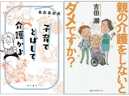 サイゾーウーマンカルチャーブックレビュー同居も無理もしない介護のリアル カルチャー [サイジョの本棚] 『子育てとばして介護かよ』『親の介護をしないとダメですか?』:同居も無理もしない介護のリアルを描く 2019/11/23 17:00 保田夏子 サイジョの本棚 ――本屋にあまた並ぶ新刊の中から、サイゾーウーマン読者の本棚に入れたい書籍・コミックを紹介します。 『子育てとばして介護かよ』(島影 真奈美、KADOKAWA) 別居している義母からのかみ合わない電話をきっかけに、義父母の認知症が立て続けに発覚。「仕事は続ける」「同居はできない」という前提で挑む、「介護1年生」エッセイ。義父母が拒む中でどう認知症の認定を受けてもらい、ケアサービスまでこぎ着けるか、お役所仕事の介護申請とどう折り合うか、夫との危機感の差をどう受け止めるか――。初めての介護に振り回された日々を、イラストを交え、軽やかにつづる。現在も仕事と大学院研究と介護の「3足のわらじ」をはく著者の、途中報告リポート。 『親の介護をしないとダメですか?』(吉田 潮、ベストセラーズ) コラムニスト・吉田潮が、自身の父の老化を見つめ、母による介護の限界を経て、特別養護老人ホーム(特養)に入所してもらった日々を、母と共同の介護日誌とともに振り返る。元新聞記者で闊達だった父から意欲が減少し「文化」がなくなる経緯や、頻繁な転倒や排泄の失敗を家族で介護する困難さ、施設選びに際する注意点や特養の実態、実際にかかった費用など、介護の現実が淡々と書かれている。「美談でもないし、悲惨な状況にも陥っていないし、自宅介護は一ミリもお勧めしない」、異色の介護エッセイ。 ************ 年に1度か2度会うたびに、親が小さくなり、老いていく。一定の年齢になれば、それは当たり前のことなのに、普段親と離れて暮らしていると、その事実に心ひそかにうろたえてしまう。それは、私が「老い」をよく知らないからだ。 「老い」とは、年を取ることで体や精神的機能が衰えていくこと。頭では理解していても、核家族で育ち、進学で地元を離れそのまま就職し、仕事でも私生活でも高齢者と深く関わらない日常を過ごしていると、老化が具体的にどういう状態なのか、実はまったくわかっていない。「老い」という科目を履修しそびれたまま大人になっている不安が、時折頭をよぎって、しかし「まだ大丈夫」と先送りにしている。 9月中旬に、そんな老化と介護の現実の一端を見せてくれる本が、2冊ほぼ同時に刊行された。『子育てとばして介護かよ』と『親の介護をしないとダメですか?』は、どちらも40代女性著者による、「親の介護」「親の認知症」の始まりを書いたエッセイ。前者は、別居する義父母の認知症に気づき、ケアサービスを受けるまでを振り返り、後者は、急激に身体機能が衰えた実父が特養に入所する過程を語っている。状況はそれぞれ異なっているが、両作とも「仕事を辞めない、同居もしない」というスタンスをとっている点が共通する。 次のページ 介護の現実と共に知られるべき、自分の老い 12次のページ 関連記事 『彼女が大工になった理由』レビュー:“ニュースサイトの仕事”に疲れた彼女が、“手で作る仕事”から得た学び『<女流>放談』レビュー:異なる時代を生きた11人の作家の“生の声”によって見えてくる、「女」の変遷地層のように重なっていく孤独や被害妄想……「大阪市母子餓死事件」を題材にした小説『ここにいる』仲良し・不仲では片付かない「女同士」の関係、でも「女の敵は女」じゃない3冊「ちゃんとした料理を作らなきゃ」「ていねいに暮らさなきゃ」、“料理”に自分で呪いをかけてない?