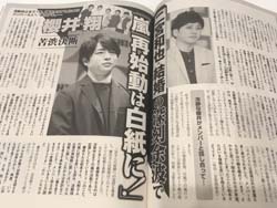 サイゾーウーマンコラム神林広恵「女性週刊誌ぶった斬り」「二宮和也結婚」で乱れる嵐の足並み コラム “噂の女”神林広恵の女性週刊誌ぶった斬り!【第485回】 「二宮和也結婚」で蒸し返される大野智の同棲“公開謝罪”と、嵐の足並みの乱れ 2019/11/26 21:00 神林広恵 女性週刊誌ぶった斬り! 「女性自身」12月10日号(光文社) 下世話、醜聞、スキャンダル――。長く女性の“欲望”に応えてきた女性週刊誌を、伝説のスキャンダル雑誌「噂の真相」の元デスク神林広恵が、ぶった斬る! 「週刊文春」(文藝春秋)に再び不倫を報じられた千原せいじが『ノンストップ』(フジテレビ系)に生出演し、謝罪した。やっぱり不条理。矢口真里は不倫で全ての番組を降板し活動停止、5億円ともいわれる違約金も発生したのに。でも、せいじは番組に生出演している――。マスコミ、芸能界、テレビ界、世間の不条理だ。 第485回(11/21〜11/26発売号より) 1位「『二宮和也結婚』の深刻余波で『「嵐」再始動は白紙に!』」(「女性自身」12月10日号) 2位「冨永愛と布袋寅泰が時間差で!『4時間個室密会』」(「女性セブン」12月5・12合併号) 3位「芦田愛菜 『クラス中が注目』親密BFは『千の風に』歌手の長男」(「女性自身」12月10日号) 仲良しだったはずの嵐だが、二宮和也の結婚で不協和音が。二宮結婚発表以降、そんな報道が相次いでいる。「女性自身」でも二宮に対し、お祝いコメントを出したのが櫻井翔と相葉雅紀の2人だけだったことで、「20年の歴史を見れば、今の5人の足並みに乱れが生じていることは否めません」と嵐の異変を指摘している。 しかし、この記事で興味深いのはコメントしなかった一人、大野智がコメントしなかった理由だ。「自身」はなんと大野の“過去の恋愛事件”にこそ、その根元があるとして、音楽関係者のこんなコメントを掲載している。 「交際報道で苦い記憶の残る大野さんは、今の時期に結婚を発表した二宮さんには同じ嵐として100パーセント素直な気持ちでおめでとうと言えない心境になってしまったようです」 やっぱりあの一件は、大野に、そして嵐にかなり大きな影を落としていたんだな。あの1件とはもちろん2015年9月に「フライデー」(講談社)が報じた大野同棲と、その後の謝罪会見のことだ。大野はこの時、元女優の一般女性との熱愛同棲を報じられたが、この熱愛報道は異例の展開を見せる。報道直後、大野は宮城で開催されたコンサートで報道陣に対して“謝罪会見”をしたのだ。しかも、その内容も驚くべきものだった。「同棲という事実は一切無く、お付き合いもしていません。もう会うことも一切ございません」。同棲や交際を否定しただけでなく、今後一切女性とは会わない。そんな一方的決別宣言をマスコミの前で大野はした(させられた)。 もちろんこれは大野の本心ではなかっただろう。しかも、これまでジャニーズ事務所はタレントの熱愛が報じられても御用マスコミに後追いさせなかったりと、スルーするばかりだったのに、大野は“公開謝罪”に追い込まれたのだ。これはジャニーズ史上でも異例のことだ。 そしてこの一件以降、大野は事務所に対する不信感を募らせ、それは今年1月の嵐活動休止発表へとつながっていく。そして今回、二宮の結婚に際しても大きな影を落とした。活動休止を1年後に控えた“仲良し”嵐にも亀裂を起こす要因となってしまったというのだ。 そう考えると、ジャニーズの非人道的な“タレント管理”は時を経て大きなしこりとなり、結果的に自分たちの首を締める形になった。グループの絆を綻ばせる原因となった。SMAP独立騒動も同様、因果である。 次のページ 密会を報道された冨永愛の謎 12次のページ 関連記事 嵐・二宮和也の結婚について、女性週刊誌が一斉に報じた「出産の壁」嵐・二宮和也、妻・伊藤綾子が原因で両親と「関係悪化」報道――木村拓哉&工藤静香との類似点田口淳之介、ジャニーズ退所のウラに――中森明菜と重なる「家族の依存」と「絶縁」ジャニーズタレントのプロデューサー化は異常? 事務所の“衰退”を示唆する「週刊女性」飯島直子、「夫の不倫」報道の切なすぎる内容――“夫の兄嫁”が饒舌に話したエピソード