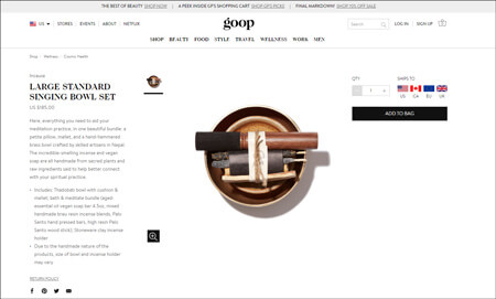 サイゾーウーマン海外グウィネスが売ってるヤバイ商品 海外 やばい、胡散臭い、高いの役満! スピ・自然派女子の最高峰、グウィネス・パルトロー「goop」のトンデモ商品5連発! 2020/03/06 14:03 堀川樹里(ライター) グウィネス・パルトローランキング 瞑想初心者へのお得なセット「Large Standard Singing Bowl Set」 「goop」より 「ネパールの熟練職人が丹念に作った」という、瞑想を練習するために必要な「小さな枕」「バチ」「おりん」のセット。うっとりするような芳香を放つ「お香」と「ヴィーガン石鹸」も付いており、マインドだけでなくボディのクレンジングも考えてくれている、至れり尽くせりのお得なセットだ。お香と石鹸は手作りで、「神聖な」原料を使用。すべてが精神修行を手助けしてくれるそうで、おりんを鳴らせば「霊的な周波数とつながり、スピリチュアル的なランクが上がっていくような錯覚に見舞われる」とのこと。 おりんはこぶりで、石鹸も127gほどの小ささ。受け取った時、「小っさ」とびっくりしそうだが、ヨガや瞑想に興味がある人にはスターターセットとして十分なのかもしれない。お値段は185ドル(約2万円)。 前のページ1234 堀川樹里(ライター) 6歳で『空飛ぶ鉄腕美女ワンダーウーマン』にハマった筋金入りの海外ドラマ・ジャンキー。現在、フリーランスライターとして海外ドラマを中心に海外エンターテイメントに関する記事を公式サイトや雑誌等で執筆、翻訳。海外在住歴25年以上。 記事一覧 最終更新:2020/03/06 14:03 オシャレを包装紙に使ってくるから、気を付けて! 関連記事 グウィネス・パルトロー、13歳の息子の「ママがバイブレーターを売ってるのはカッコイイ」発言で炎上グウィネス・パルトロー、問題作「私のアソコと同じ匂い」キャンドルを発売!オーガニック大好きなグウィネス・パルトローが、「“夜の潤滑油”にはココナッツオイル!」と熱く推奨ファン垂涎!? グウィネス・パルトローが洋服をネットオークションに出品グウィネス・パルトローのおしゃれサイトで、禁断のアナルセックスを大特集! 次の記事 坂上忍がブーメラン発言 >