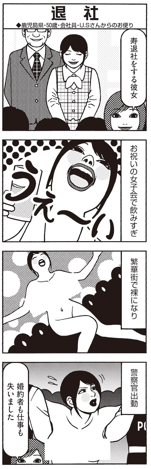 サイゾーウーマンカルチャーマンガ本当にあった笑える話【漫画】寿退社で人生終了した女 カルチャー 『本当にあった笑える話』(ぶんか社より) 【漫画・THE自業自得な女】寿退社の勝ち組女が一転! 職だけでなく婚約者まで失ったワケ 2020/03/31 11:00 『本当にあった笑える話』編集部 マンガ漫画本当にあった笑える話 【「本当にあった笑える話」(ぶんか社)より】 ↓もっとマンガが読みたい方はコチラ↓ ぶんか社のコミックエッセイ・実話4コマ漫画が待てば無料で読める! スマホ向け漫画サイト『マンガよもんが』 『本当にあった笑える話』シリーズ誌では、みなさまからの投稿を随時募集しております。 テーマは「芸能人目撃談」「赤っ恥エピソード」「ペットトラブル」など幅広く募集中! →投稿は【こちらから】 最終更新:2020/03/31 11:00 何もかも失った女 関連記事 【漫画・職場トラブル】「認知しなくていいから!」 パワハラ女上司が後輩にしたお願い 【漫画・恋愛トラブル】悲劇! 泣くほどいらない恐怖の超ダサ誕生日プレゼント! 【漫画・友人トラブル】ヤバイ男と風水にハマった女の末路【漫画・恋愛トラブル】彼氏と親友と鍋パーティ! 寝落ちから覚めると衝撃の光景が……【漫画・九死に一生体験談】私の家が……! 激務つづきのブラックOLに起きた災難 その他の作品を読む 次の記事 嵐・二宮「一番稼いでる」宣言 >