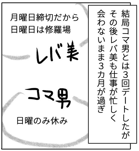 サイゾーウーマンカルチャーマンガ【マンガ】便利だから結婚する? カルチャー 女の共感コミックサイト・ウーコミ! 【実話】結婚するのは「便利だから」!? お見合い5度目のデートで「いいかも」と思った矢先 2020/05/01 20:00 ウーコミ!編集部 マンガ婚活ウーコミウーコミ! 「ついていけない…これがお見合いのテンポ!?」 レバ美は未婚の漫画家、34歳。ある日、妹から「お姉ちゃんの方が合いそう」とお見合い相手・コマ男を紹介される。「まずは一緒に住みませんか」の言葉に軽く承諾すると、トントン拍子に結婚話が進んでしまって!? 恋愛と条件、そして世間の“普通”に翻弄されるレバ美が、自身のお見合い体験を赤裸々に描くリアルエッセイ「お見合い結婚、恋してなくても幸せになれますか?」。 冒頭の1話目・エピソード6を無料で公開いたします。 レバ美/ウーコミ! ep.1-6……エロマンガに引かない! ――「お見合い結婚、恋してなくても幸せになれますか?」エピソード7は、来週金曜日に公開予定! ↓最新話はめちゃコミックで公開↓ 『お見合い結婚、恋してなくても幸せになれますか?』 ↓他の作品を無料でもっと読みたい方はコチラ↓ 女性の”共感”コミックサイト『ウーコミ!』 最終更新:2020/05/01 20:00 レバ美さんの物言いもなかなかよ 関連記事 【実話】「エッチな漫画を描いてます」親にも言えないアダルトな職業、婚活デートで明かすのはアリ?【漫画・激イラ話】「お供します〜!」ランチについてきて財布を絶対に出さないクソ後輩【独身OLと愛犬の日常】こんなはずじゃなかったのに……ユニクロジーンズの落とし穴 その他の作品を読む 次の記事 声優・白井悠介、“既婚者説”が浮上? >