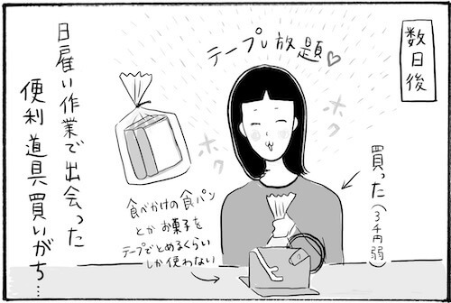サイゾーウーマンカルチャーマンガ柿ノ種まきこ『アラサー独身女、今日も日雇いで生きてます』【漫画】買って後悔な便利グッズ カルチャー 【連載】柿ノ種まきこ『アラサー独身女、今日も日雇いで生きてます』 【日雇いマンガ】99話『ついつい買っちゃう! 便利グッズの落とし穴』 2020/05/14 13:00 柿ノ種まきこ(マンガ家) マンガ柿ノ種まき子日雇い ――「キツイ」「汚い」「男臭い」……なんとなく近寄りがたいイメージのある“日雇労働”。その、実態はどのようなものなのか? 日雇い労働を生業とするアラサー・柿ノ種まきこが、日雇いの日々と人間模様を紹介します。 第99話『ついつい買っちゃう! 便利グッズの落とし穴』 日雇いの便利グッズ、ついつい気になっちゃうんですよね〜。 日常ではあんまり使わないものなのに結局買っちゃったりして無駄使い……! ――毎週、木曜日に最新話を更新。次回100話は5月21日(木)の更新予定です。 柿ノ種まきこ(マンガ家) 日雇いをしながらマンガを描くアラサー。過去には、「iVERY」にて婚活マンガ『女もつらいよ』を連載。現在はインスタグラムにて、マンガを不定期投稿。 Instagram:@kakinotane_makiko LINEスタンプ大好評発売中! 最終更新:2020/05/14 13:00 関連記事 【日雇いマンガ】『アラサー独身女、今日も日雇いで生きてます』【36~42話まとめ読み】【日雇いマンガ】『アラサー独身女、今日も日雇いで生きてます』【29~35話まとめ読み】【日雇いマンガ】『アラサー独身女、今日も日雇いで生きてます』【22~28話まとめ読み】【日雇いマンガ】『アラサー独身女、今日も日雇いで生きてます』【15~21話まとめ読み】【日雇いマンガ】『アラサー独身女、今日も日雇いで生きてます』【8~14話まとめ読み】 その他の作品を読むバックナンバーを読む 次の記事 大倉忠義、“ニヤリ顔”から撃沈 >