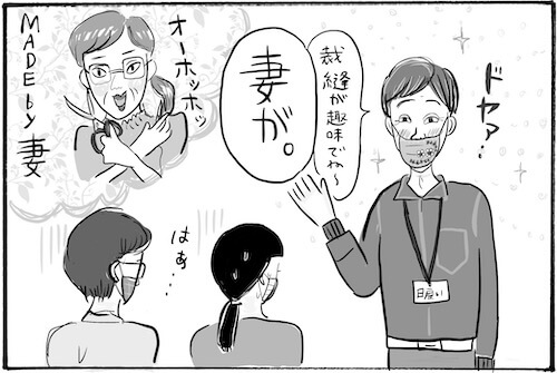 ドヤって妻MADEのマスクを自慢してくる男性陣……! 微笑ましいですね〜。
