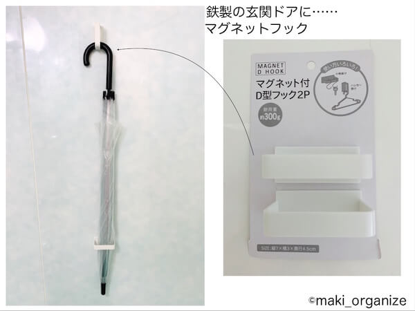 サイゾーウーマン暮らし住まい傘の収納、100均で6パターン 暮らし 伊藤まきの「お片付けSOS」相談!番外編 傘の「イラッ」を100均グッズでスッキリ解決! 収納のプロが教える、実例6パターン 2020/07/13 19:30 伊藤まき(収納ライター) 100均「お片付け・お掃除SOS」伊藤まき [2]玄関の平面に「フィルムリングフック」 スッキリ暮らしたい方へおすすめ 玄関の周りにツルツルした平面があれば、セリアとワッツで購入できる「フィルムリングフック」がおすすめ。取っ手の太い部分をキャッチするから、動く煩わしさも少なめ。ただし、一人暮らし向けのコンパクト収納なので大家族には不向きかも。 [3]鉄製の玄関ドアならセリア「マグネット付D型フック」 マンションに多い、鉄製の玄関ドアにおすすめ! 鉄製の玄関ドアに付ける、マグネットタイプの傘立ては多数ありますが……。扉の開閉時にグラつくなんて声もちらほら。セリアの「マグネット付D型フック2P」なら、自宅の玄関ドアに使えなくてもほかの用途で活用できます。収納グッズは、セパレートのほうが自由に使えます。こちらも、コンパクトな1〜2人暮らし向けになります。 次のページ [4]下駄箱の扉にワッツ「ドアにかけられるフック(2個)」 前のページ1234次のページ 関連記事 SNSで人気爆発、セリア「100均フック」! プロも大絶賛「フィルムリングフック」4つの魅力「食器棚」の収納力アップに“アレ”は厳禁!! 劇的チェンジの秘訣で「容量300%増」も!?ダイソーの「落ちない名品」で、イラッとするトイレの“収納と掃除”が極楽に!壊れたビニール傘は、可燃・不燃どのゴミの日に出せばいいんですか?玄関の「イラッ」を100均グッズで解決! 「傘立て」「全身鏡」をセリア&ダイソーでスッキリ収納
