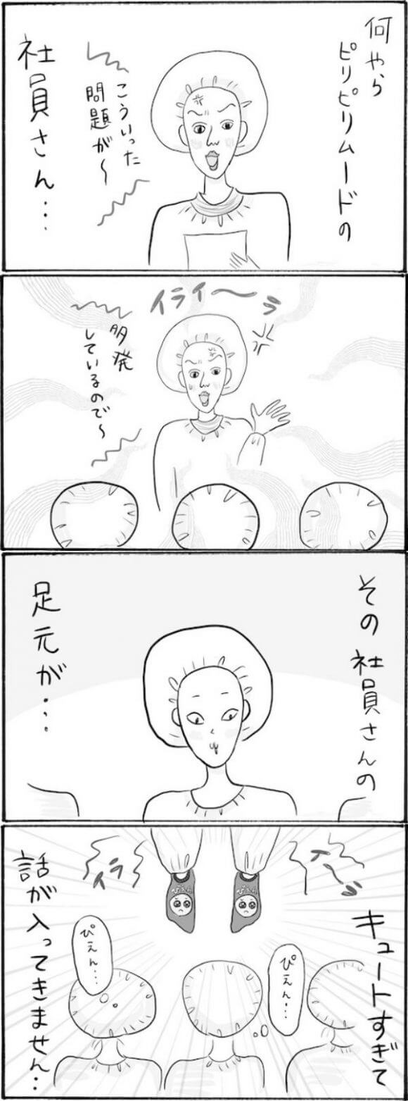 サイゾーウーマンカルチャーマンガ柿ノ種まきこ『アラサー独身女、今日も日雇いで生きてます』【漫画】イライラ社員の衝撃足元 カルチャー 【連載】柿ノ種まきこ『アラサー独身女、今日も日雇いで生きてます』 【日雇いマンガ】108話『笑ってはいけない! イライラお局社員の足元トラップ』 2020/07/16 13:00 柿ノ種まきこ(マンガ家) 日雇いマンガ柿ノ種まき子 ――「キツイ」「汚い」「男臭い」……なんとなく近寄りがたいイメージのある“日雇労働”。その、実態はどのようなものなのか? 日雇い労働を生業とするアラサー・柿ノ種まきこが、日雇いの日々と人間模様を紹介します。 第108話『笑ってはいけない! イライラお局社員の足元トラップ』 ©柿ノ種まきこ イライラモードの社員さんなのに靴下がファニーすぎるぅぅ!!! みんな目が釘付けになってしまうのでした。 ――毎週、木曜日に最新話を更新。次回109話は7月23日(木)の更新予定です。 柿ノ種まきこ(マンガ家) 日雇いをしながらマンガを描くアラサー。過去には、「iVERY」にて婚活マンガ『女もつらいよ』を連載。現在はインスタグラムにて、マンガを不定期投稿。 Instagram:@kakinotane_makiko LINEスタンプ大好評発売中! 最終更新:2020/07/16 13:00 関連記事 【日雇いマンガ】『アラサー独身女、今日も日雇いで生きてます』【36~42話まとめ読み】【日雇いマンガ】『アラサー独身女、今日も日雇いで生きてます』【29~35話まとめ読み】【日雇いマンガ】『アラサー独身女、今日も日雇いで生きてます』【22~28話まとめ読み】【日雇いマンガ】『アラサー独身女、今日も日雇いで生きてます』【15~21話まとめ読み】【日雇いマンガ】『アラサー独身女、今日も日雇いで生きてます』【8~14話まとめ読み】 その他の作品を読むバックナンバーを読む 次の記事 ダイソー「クリップスライダー」 >