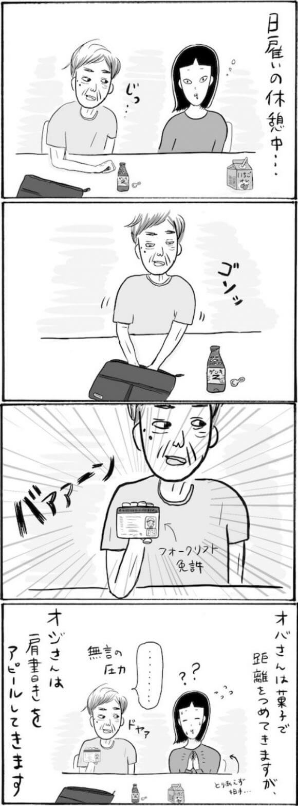 サイゾーウーマンカルチャーマンガ柿ノ種まきこ『アラサー独身女、今日も日雇いで生きてます』【日雇いマンガ】71〜77話 カルチャー 【連載】柿ノ種まきこ『アラサー独身女、今日も日雇いで生きてます』 【日雇いマンガ】『アラサー独身女、今日も日雇いで生きてます』【71~77話まとめ読み】 2020/07/24 13:00 柿ノ種まきこ(マンガ家) マンガ柿ノ種まき子日雇い ――「キツイ」「汚い」「男臭い」……なんとなく近寄りがたいイメージのある“日雇労働”。その、実態はどのようなものなのか? 日雇い労働を生業とするアラサー・柿ノ種まきこが、日雇いの日々と人間模様を紹介します。 今回は71〜77話をまとめ読みでお送りいたします。 (1〜7話はこちら)(8〜14話はこちら) (15〜21話はこちら)(22〜28話はこちら) (29〜35話はこちら)(36〜42話はこちら) (43〜49話はこちら)(50〜56話はこちら) (57〜63話はこちら)(64〜70話はこちら) 第71話『ドヤ顔おじさん登場! 反応にこまりすぎる珍行動とは……!?』 ©柿ノ種まきこ おばさんとおじさんの距離のつめ方の違い……。 どっちにしろ反応に困る〜! 対応してる間に今日も休憩時間が終わります……(涙) 第72話『日雇い飯!不動の王者・菓子パンを脅かす新アイテム登場!?』 ©柿ノ種まきこ 冷凍食品って本当おいしくなりましたよね。特にこの定食みたいになっているシリーズは 本当に便利です……! が、 日雇い飯としてはちょっと不向きでした。 次のページ 第73話『曲者ぞろいで大苦戦!? できれば避けたい現場リーダー任務』 1234次のページ 関連記事 【日雇いマンガ】『アラサー独身女、今日も日雇いで生きてます』【36~42話まとめ読み】【日雇いマンガ】『アラサー独身女、今日も日雇いで生きてます』【29~35話まとめ読み】【日雇いマンガ】『アラサー独身女、今日も日雇いで生きてます』【22~28話まとめ読み】【日雇いマンガ】『アラサー独身女、今日も日雇いで生きてます』【15~21話まとめ読み】【日雇いマンガ】『アラサー独身女、今日も日雇いで生きてます』【8~14話まとめ読み】 その他の作品を読むバックナンバーを読む