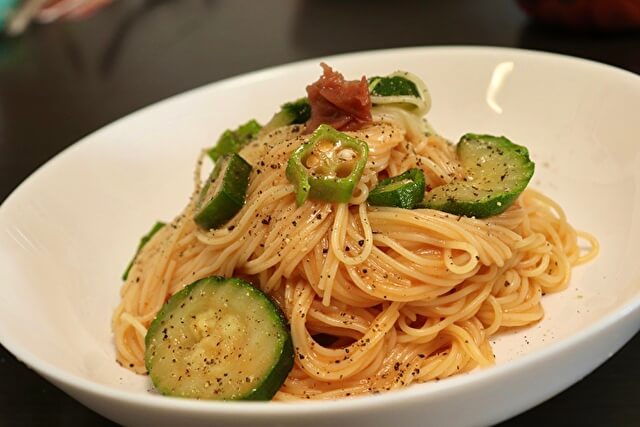 サイゾーウーマン暮らし食べ物食パンは業スーが最高のコスパ 暮らし 布川隼汰が「業務用スーパーで100円レシピ」作ってみた! 食パンは「業務スーパー」が一番“高コスパ”!? 「これ以外買えない」とオススメされる「朝の輝き」の簡単レシピ 2020/09/03 18:00 布川隼汰(俳優) 料理業務用スーパー100円レシピ 【オクラとズッキーニの梅トマト冷製カッペリーニ】 (C)布川隼汰 (材料) カッペリーニ(パスタ)1.1mm……75g 13円 冷凍ズッキーニ……40g 11円 冷凍オクラ……25g 8円 黒胡椒……適量 1円 ●梅干し……2個(一つはトッピング) 8円 ●ケチャップ……20g 3円 ●にんにくチューブ……2.5g 2円 ●ほんだし……2g 1円 ●塩……2g 1円 ●醤油……小さじ1 1円 ●オリーブオイル……大さじ1 5円 ●水……大さじ2 0円 合計54円 1.●の材料をミキサーにかける(梅干しは種を取り、 一つはトッピング用に取っておく)。 2.カッペリーニとズッキーニを3分茹でる。 3.カッペリーニと野菜をざるにあけ、氷水で冷やす。この時に冷凍オクラも一緒に水で解凍する。 4.よく水を切り、 ソースと絡めて梅と胡椒をトッピングしたらでき上がり! ◎ワンポイント ・味が薄ければ醤油か、トッピング梅干しを追加してください! ・しっかり冷やし、しっかり水を切るのが、おいしくいただくポイントです! ◎感想 カッペリーニってなんだ? というところから、見よう見まねで取りかかった料理でしたが、最終的にはとてもおいしくできました! 梅とケチャップ、意外と合う! トマトソースがよりサッパリして清涼感があり、それでいて、にんにくのガッツリさも加わったナイスコンビネーショ ンでした。冷凍野菜もしっかり食感を残してくれていて、最高でした! 【近況報告】 本日(9月3日)、『Nスタ』(TBS系、午後3時49分〜7時00分)にて密着取材の模様が放送予定です! 僕の節約生活も紹介されますので、ぜひ! 前のページ1234 布川隼汰(俳優) 1992年8月25日生まれ。15歳の時に『3年B組金八先生』(TBS系)でデビューし、以後、 舞台・映画などで主演を数々経験し、俳優としてのキャリアを重ねる。最近では情報番組『スッキリ』(日本テレビ系)のレギュラーリポーターや、監督・ 脚本・編集・演技講師などマルチに活躍。特技は節約。 記事一覧 X:@shunta22fukawa Instagram:@shuntafukawa 最終更新:2020/09/03 18:00 業スー以外の食パンは買えない体になってしまう! 関連記事 業務スーパーの食品で、激安「ホットプレートレシピ」にトライ! 石焼ビビンバのおいしい作り方は!?業務スーパーのコスパ最強「オススメ食品」5選! 「スイーツ作りに持ってこい」なのは……?【リッチチーズケーキ、チューロス、プチ大福ほか】業務スーパー「冷凍野菜」の使い勝手を大検証! 人気の姜葱醤で「無限ブロッコリー」を作ってみた業務スーパーの調味料「焼肉のたれ」は有能な便利屋! 「山本ゆりさん考案レシピ」にアレンジを加えて、使ってみると……!?業務スーパー界の大スター「リッチチーズケーキ」の実力は? 簡単&激安スイーツアレンジに挑戦 次の記事 駒井リポーターがジャニーズ現場出禁に!? >