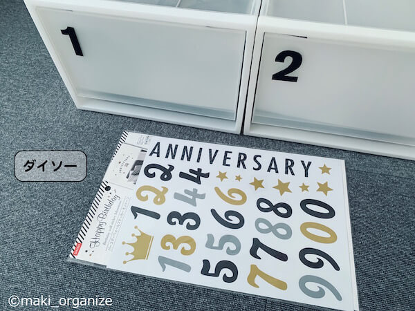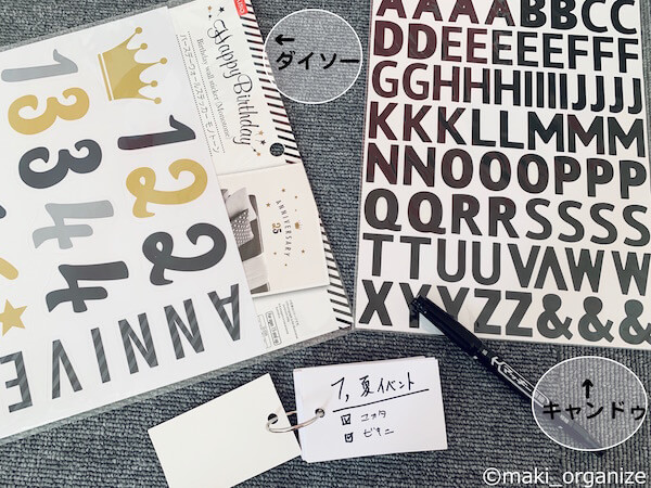 サイゾーウーマン暮らし住まいダイソーの園芸用「ネームプレート」は収納に◎ 暮らし 伊藤まきの「お片付けSOS」相談! ダイソー園芸用「ネームプレート」が必殺アイテム!? 収納のプロが「衣替え」で愛用する100均グッズ3選 2020/09/07 19:30 伊藤まき(収納ライター) 「お片付け・お掃除SOS」伊藤まき ラベル収納1:100均「貼ってはがせるインデックスシール」 [私物]何度も貼り直し、書き直しがしやすい(C)maki_organize 「簡単なラベル」とは、100均の「貼ってはがせるインデックスシール」です。これなら、収納の見直しにもすぐ対応できます。もちろん、マスキングテープも同様です。でも、自分の手書き文字に自信がない。せっかく片付けたのだから、キレイに文字を揃えたい。字が小さくて、わかりにくいという声も。 そんなときは、オシャレな数字やアルファベットのステッカーを使ったラベリングが簡単です。 ラベル収納2:ダイソー「バースディウォールステッカー」、キャンドゥ「アルファベットステッカー」 オシャレなシールで、気分も上がる(C)maki_organize ダイソーの「バースディウォールステッカー モノトーン」とキャンドゥの「アルファベットステッカー」なら、オシャレに簡単に! ラベリングできます。収納箱の中身が変わっても、ラベルを書き換える必要なし。番号・アルファベットの中身をメモやカードに記録して、収納箱の付近に置いておくだけでOKです。 無印良品の収納ケースに貼って、愛用しています(C)maki_organize 実際、私もヘビロテしています。1番には水枕、湯たんぽ、加湿器などグループが異なるモノをざっくり入れるだけ。収納庫の扉裏に入れたモノをメモして貼り、管理しています。不要になったら、メモに×印を付けるだけ。このやり方にしてから、使わないモノをズルズルと置かなくなりました。 次のページ 数の多いアイテムは、ラベリング+写真管理で管理 前のページ123次のページ