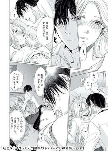 「もう会えない」と一方的に告げられ、音信不通になっていた愁平との再会に戸惑う雪乃でしたが、何気ない会話から恋愛の話になり、「どうせ恋愛もまともにしてないんでしょ」「じゃあ、試してみるか?」と、売り言葉に買い言葉で唐突にキスをされ――。学生時代とは違うキスに「こんなふうにしたことなかった…」と戸惑っていると、「俺たち、この先は初めてだよな」、そう言って体を優しく愛撫しはじめる愁平。あの頃は知らなかった欲情した男の顔に、雪乃の体は敏感に反応してしまいます。