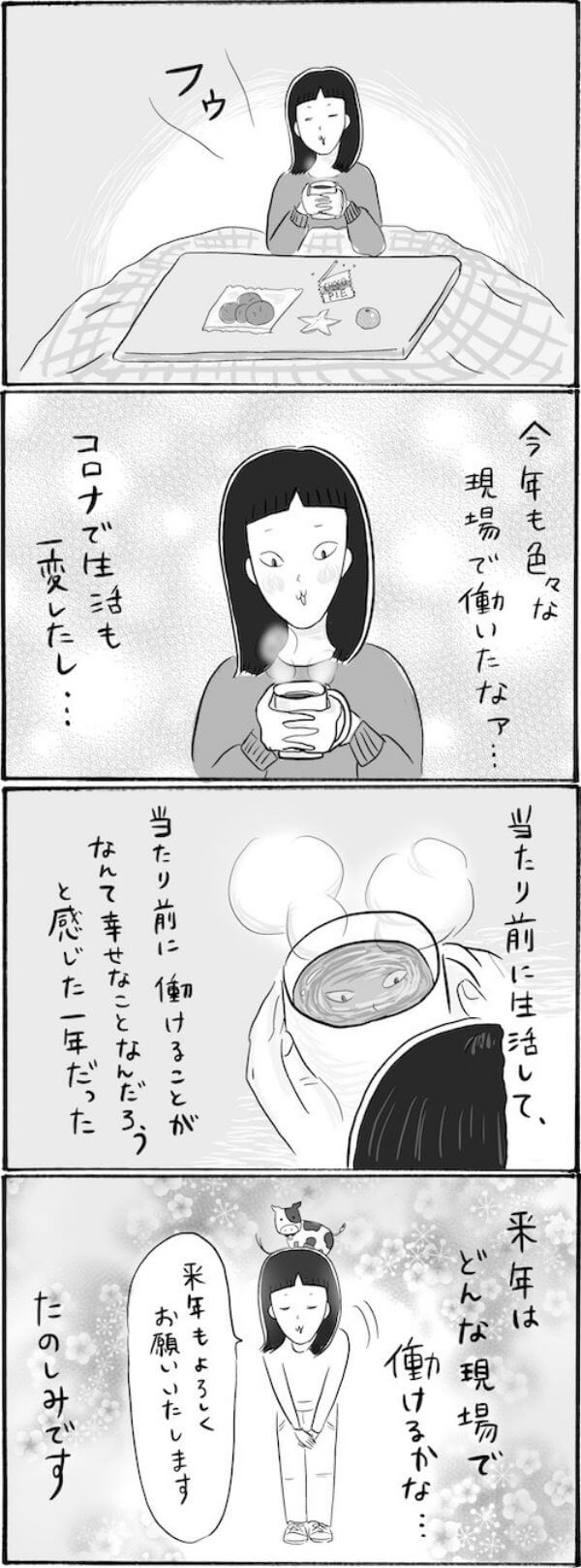 サイゾーウーマンカルチャーマンガ柿ノ種まきこ『アラサー独身女、今日も日雇いで生きてます』【漫画】コロナ禍の日雇い振り返り カルチャー 【連載】柿ノ種まきこ『アラサー独身女、今日も日雇いで生きてます』 【日雇いマンガ】132話『アラサー日雇い女、コロナ禍の2020年現場を振り返る。』 2020/12/31 13:00 柿ノ種まきこ(マンガ家) マンガ柿ノ種まき子日雇い ――「キツイ」「汚い」「男臭い」……なんとなく近寄りがたいイメージのある“日雇労働”。その、実態はどのようなものなのか? 日雇い労働を生業とするアラサー・柿ノ種まきこが、日雇いの日々と人間模様を紹介します。 第132話『アラサー日雇い女、コロナ禍の2020年現場を振り返る。』 ©柿ノ種まきこ 新型コロナ流行により、今年は日雇い現場も大変な一年となりました。 それと同時に、こうして作業することで誰かの役に立ててるんだと実感した一年でもありました。 来年もどんな現場や人達に出会えるのか楽しみです……。 ――毎週、木曜日に最新話を更新。次回133話は1月7日(木)の更新予定です。 柿ノ種まきこ(マンガ家) 日雇いをしながらマンガを描くアラサー。過去には、「iVERY」にて婚活マンガ『女もつらいよ』を連載。現在はインスタグラムにて、マンガを不定期投稿。 Instagram:@kakinotane_makiko LINEスタンプ大好評発売中! 最終更新:2020/12/31 13:00 関連記事 【日雇いマンガ】『アラサー独身女、今日も日雇いで生きてます』【78~84話まとめ読み】【日雇いマンガ】『アラサー独身女、今日も日雇いで生きてます』【85~91話まとめ読み】【日雇いマンガ】『アラサー独身女、今日も日雇いで生きてます』【92~98話まとめ読み】【1~8話まとめ読み】統合失調症にかかりました~にゃんside~【エッセイ漫画】【9~15話まとめ読み】統合失調症にかかりました~にゃんside~【エッセイ漫画】 その他の作品を読むバックナンバーを読む 次の記事 『教場2』ライバルになりそうな番組 >
