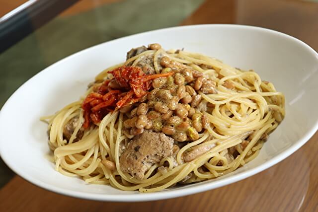 サイゾーウーマン暮らし食べ物業スー最推し「パスタ」は1.6mm 暮らし 布川隼汰が「業務用スーパーで100円レシピ」作ってみた! 業務スーパーパスタは500g/87円の1.6mmが高コスパ&超万能! 濃厚豆乳クリームなど絶品パスタがほぼ100円で 2021/02/25 18:00 布川隼汰(俳優) 業務用スーパー100円レシピ 【サバ納豆クリームパスタ】 (C)布川隼汰 (材料) パスタ……100g 17円 玉ねぎ……1/6個 5円 さば水煮缶……1/2缶 43円 調整豆乳……100ml 14円 納豆……1パック 13円 ●醤油……大さじ1 2円 ●塩コショウ……少々 1円 ●砂糖……小さじ1/2 1円 合計96円 1.パスタを茹でている間に、くし切りにした玉ねぎと鯖缶を炒める。 2.玉ねぎがしんなりしてきたら、豆乳と●の調味料を加える。 3.茹で上がったパスタを絡め、上からよく混ぜた納豆をかければ出来上がり! ◎ワンポイント ・醤油と砂糖の代わりに、めんつゆでも簡単でおいしく作れます! ・パスタのお湯は味が薄くなる原因になるので、よく切りましょう! ◎感想 洋風のようで和風な、どこか安心するパスタが完成しました! 同じ大豆からできているので、納豆と豆乳はマッチングばっちり。サバのしっかりした食べ応えと玉ねぎの歯応え、豆乳の濃厚感、シンプルなようで味わい深いパスタ、一度作ってみてください! 次のページ 【じゃがチーズクリームマカロニ】 前のページ1234次のページ 関連記事 業務スーパーマニア激推し「豚焼肉たれ漬け」で、甘口派にピッタリな“ガッツリ系肉丼”レシピ業務スーパー目玉商品で、豚の“姜葱醤”焼き! ただの生姜焼きとは違う「旨味ギュ~ッ」の絶品完成!!業務スーパーで作る「無限ピーマン」秒速レシピ! 歯ごたえ抜群&味付けは「鶏だしの素」で間違いなし!!『鉄腕!DASH!!』みたいに「ラー油」を手作りしたい! 業務スーパーの食品なら「70円以下」で実現可能業務スーパー「銀の胡麻ドレッシング」は万能調味料!? 65円で作れる簡単坦々麺レシピ&絶品豚バラミルフィーユも